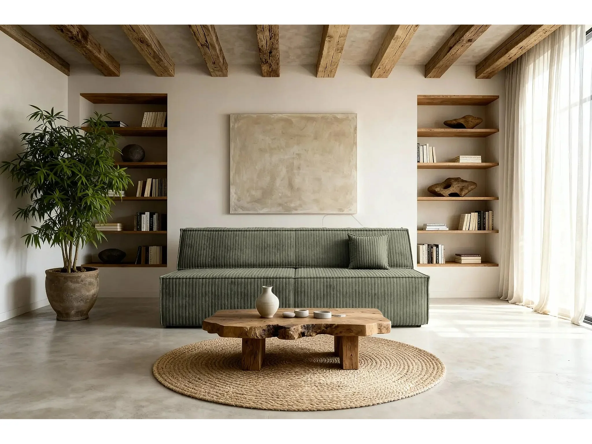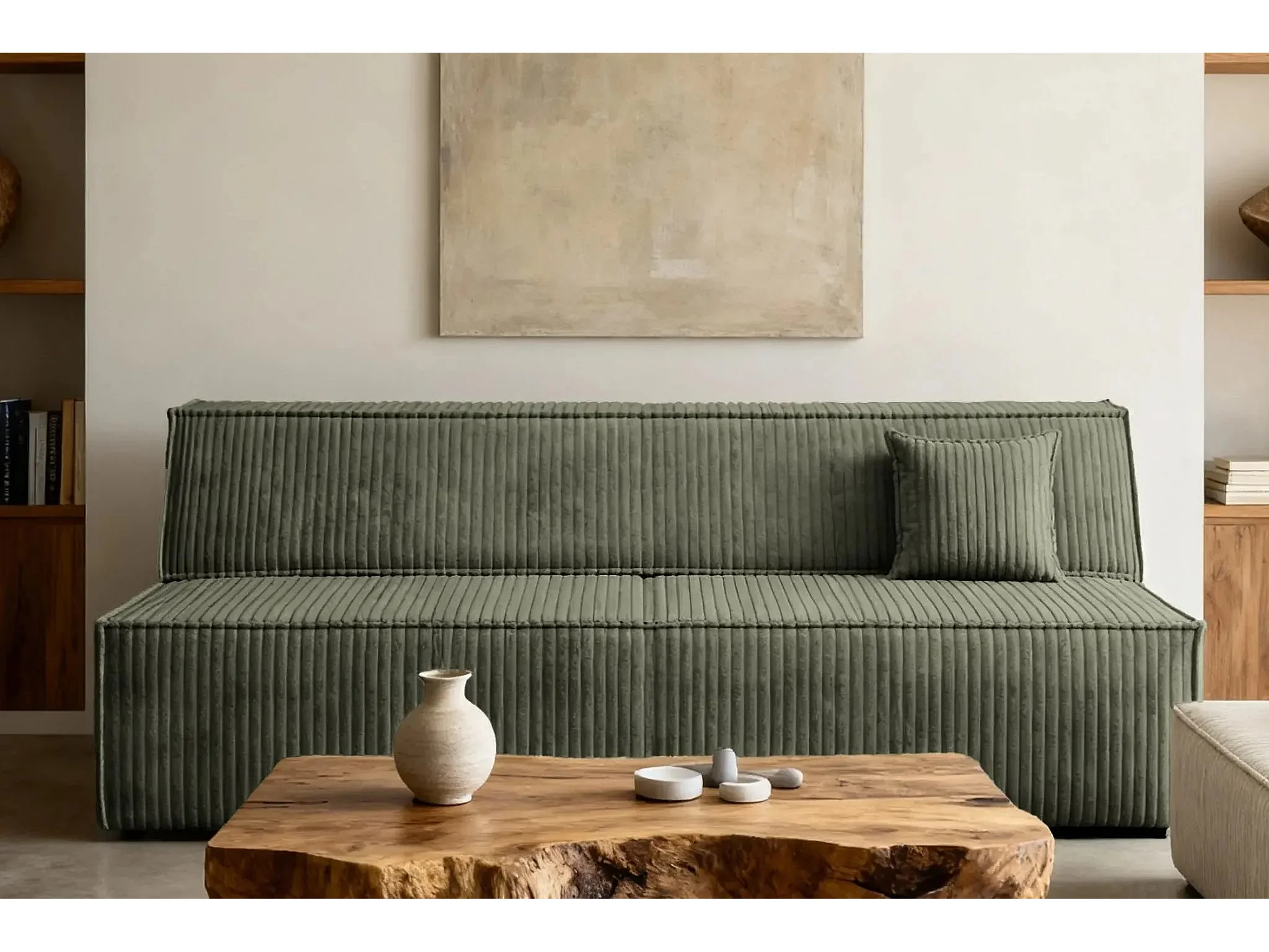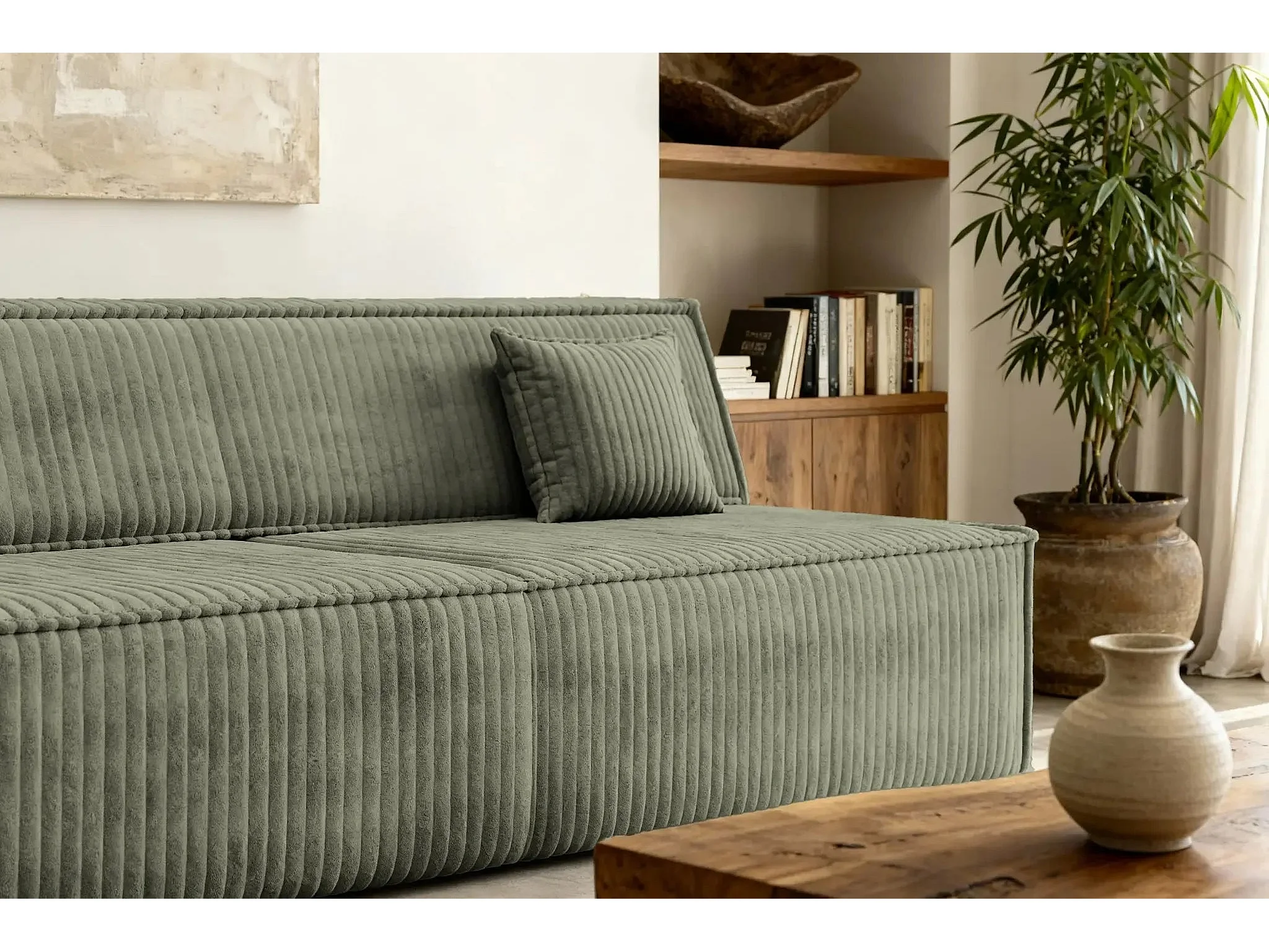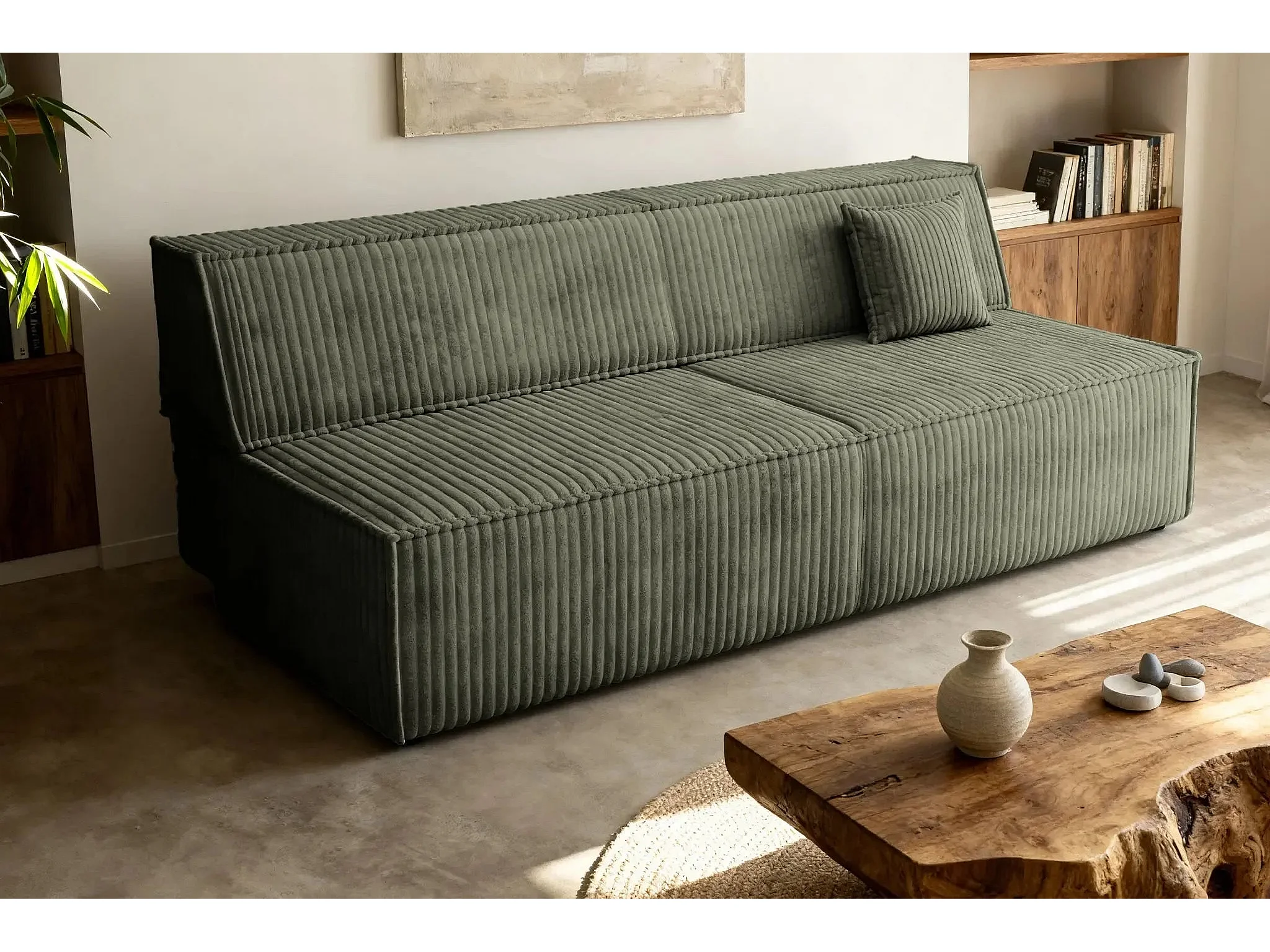 BURANO - Canapé droit convertible velours côtelé 2 places - Vert