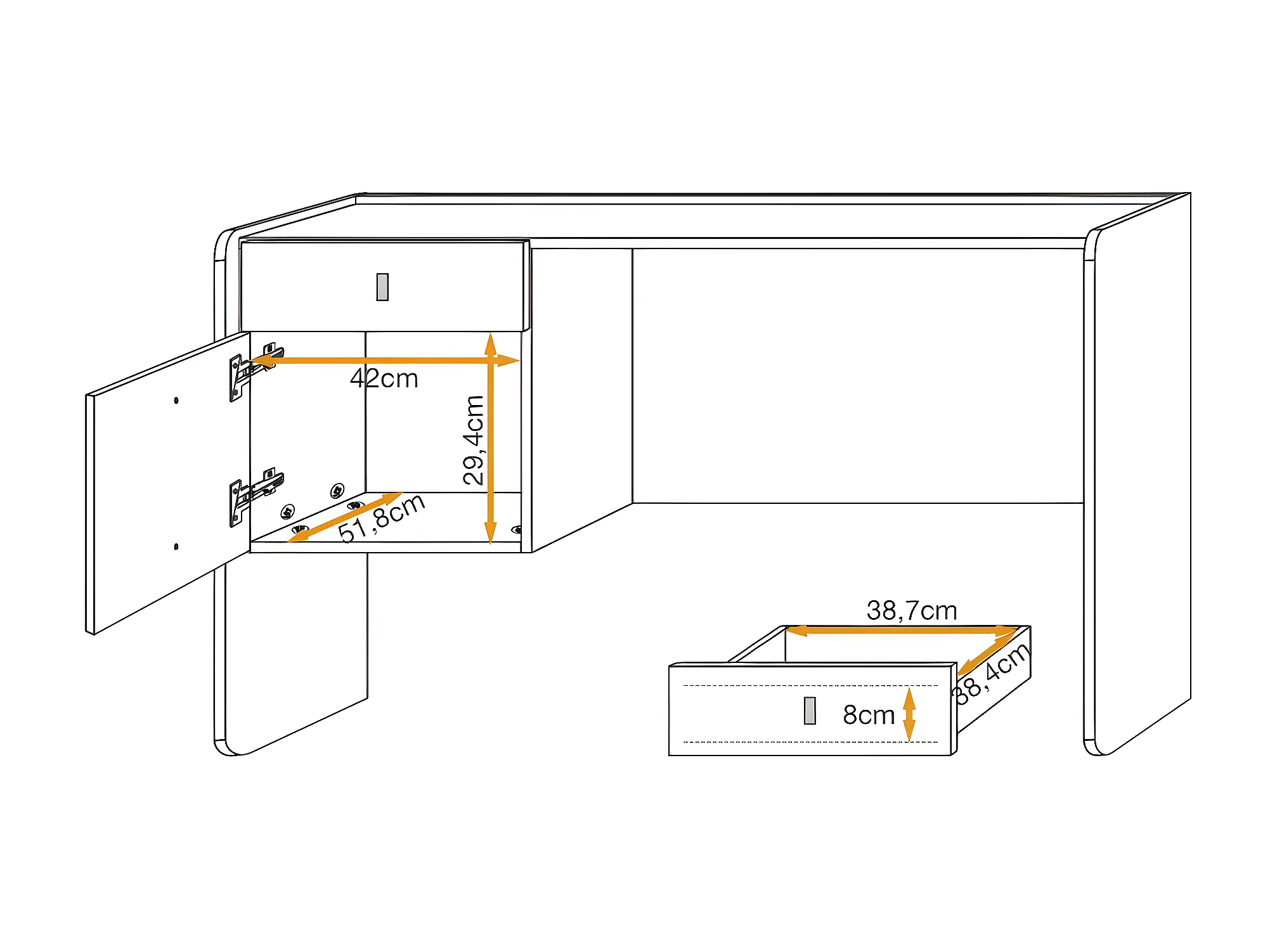 Bureau 1 Niche & 1 Tiroir "Vivero" 134cm Gris & Naturel