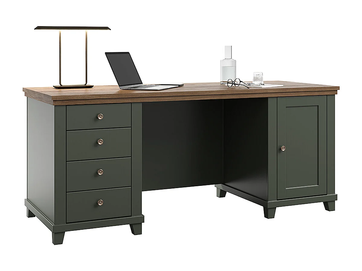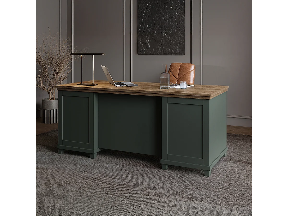 Bureau 1 porte 4 tiroirs Martin Vert et Bois