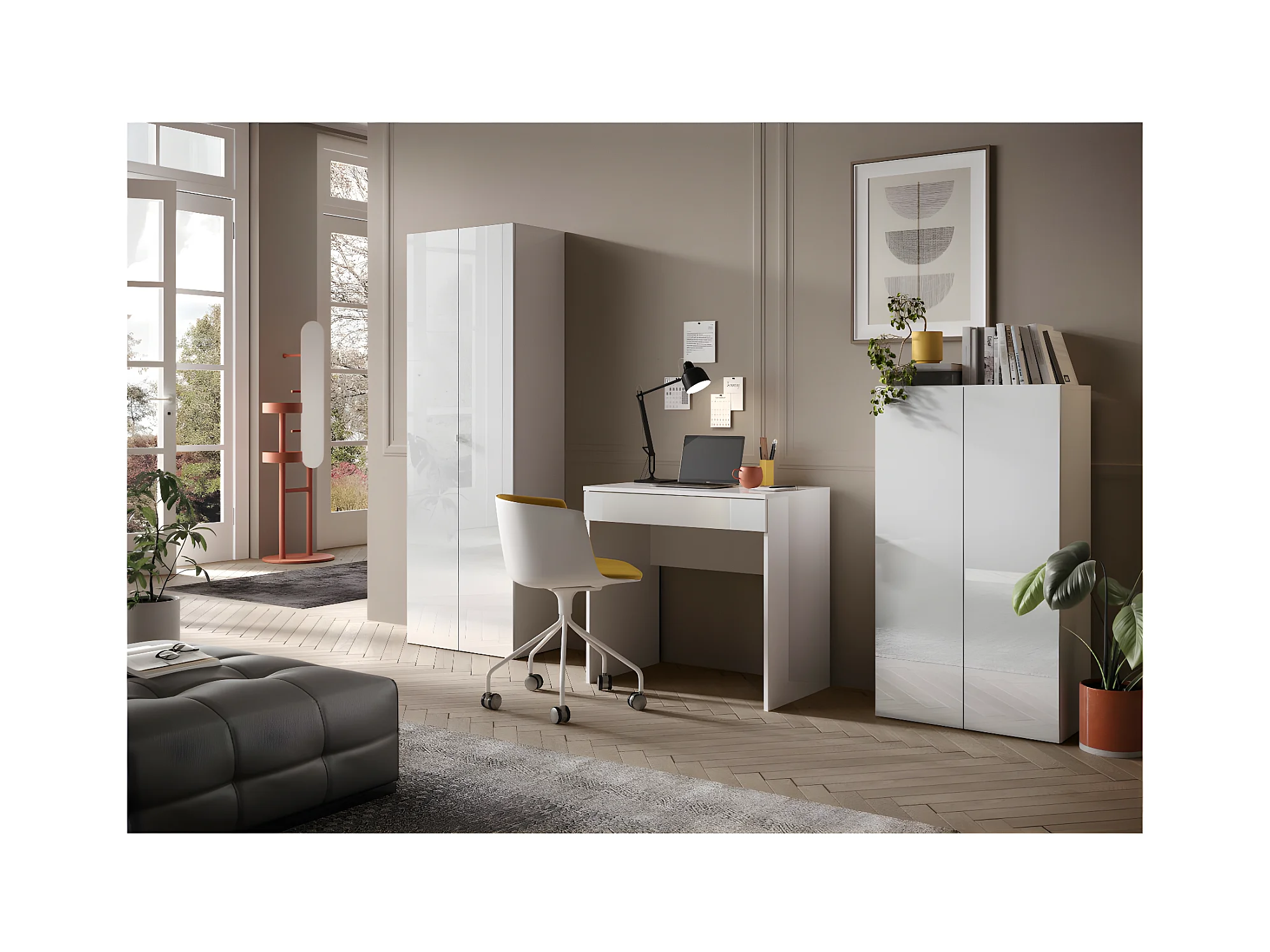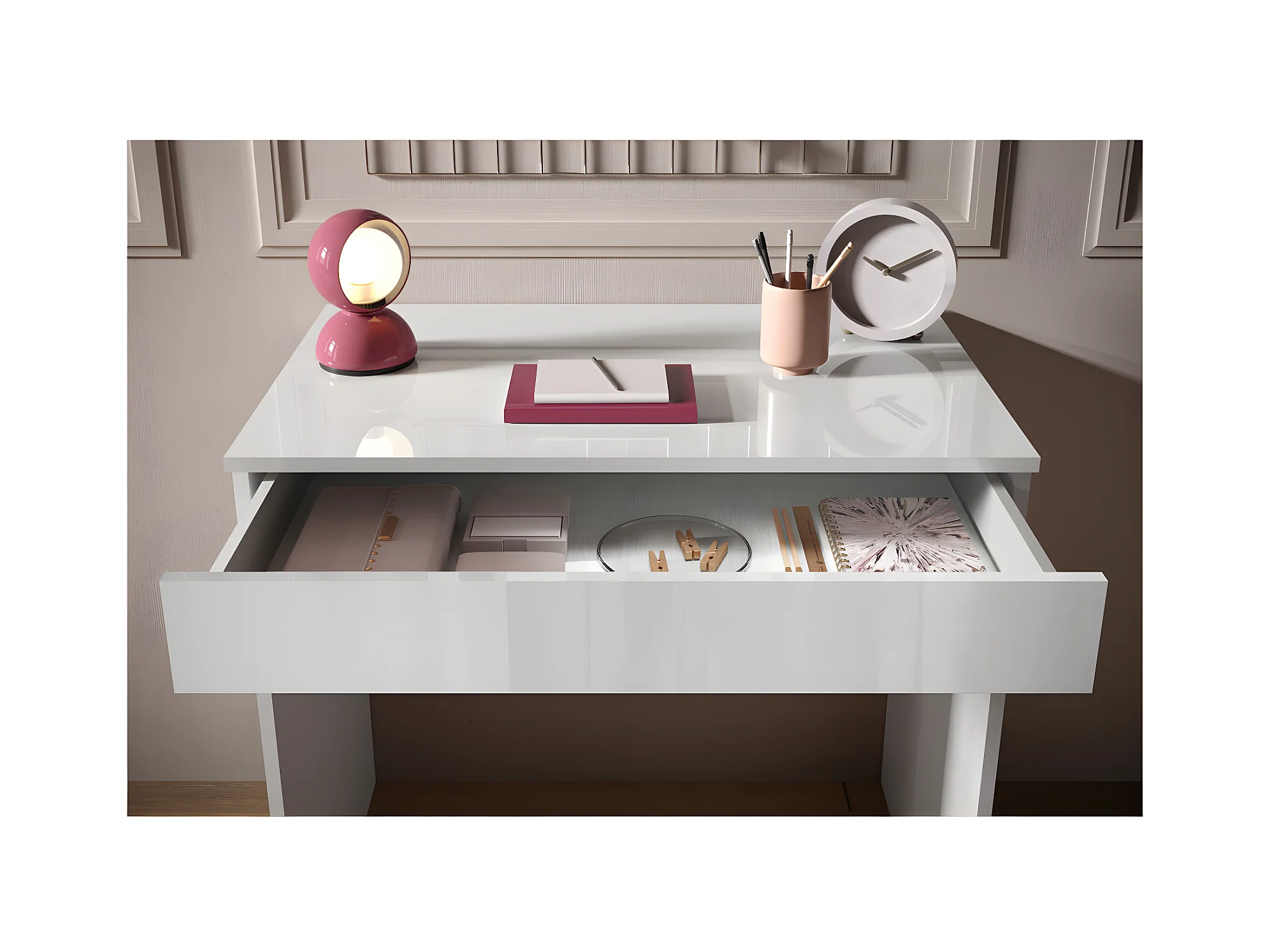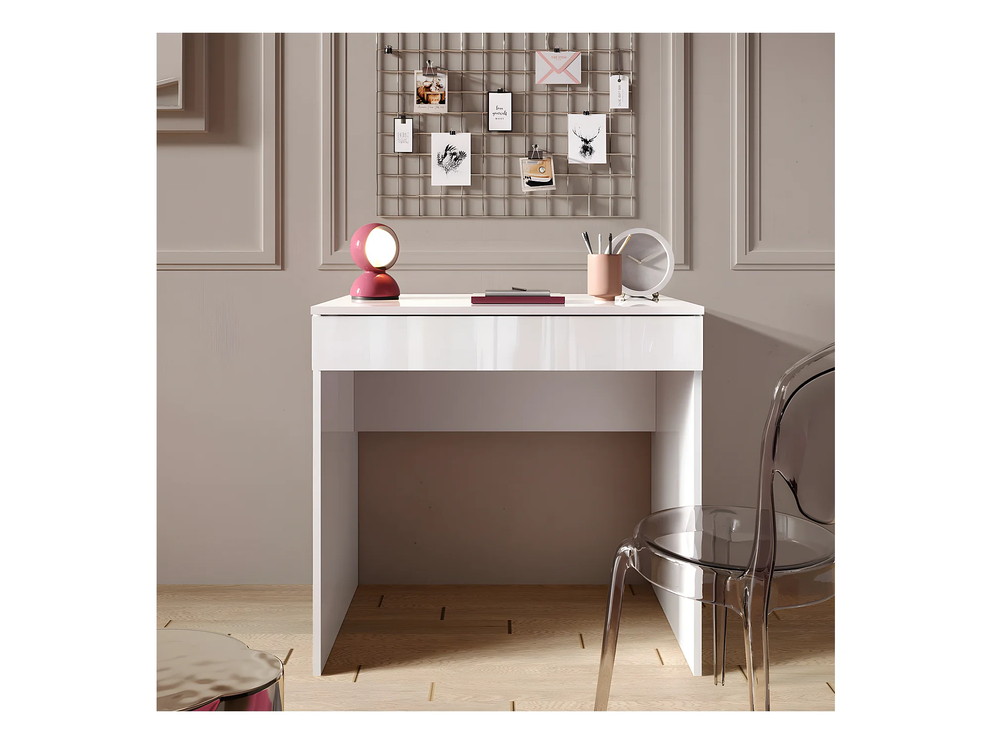 Bureau 1 tiroir 78 cm laqué Blanc brillant - TORINO