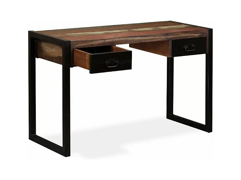 Bureau 2 tiroirs bois massif recyclé et métal noir Boust