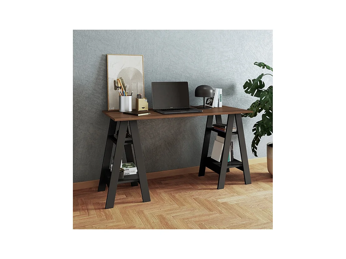 Bureau 2 Tréteaux 4 Niches Noir et Châtaignier L 135 H 75 P 60 cm