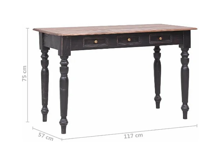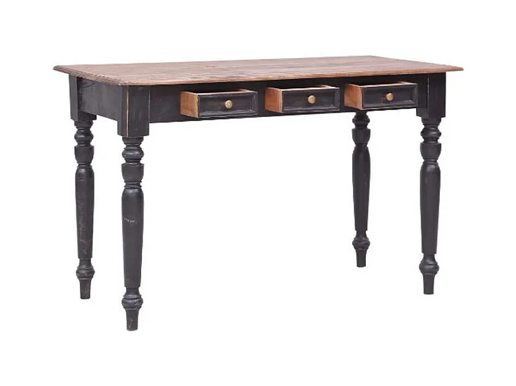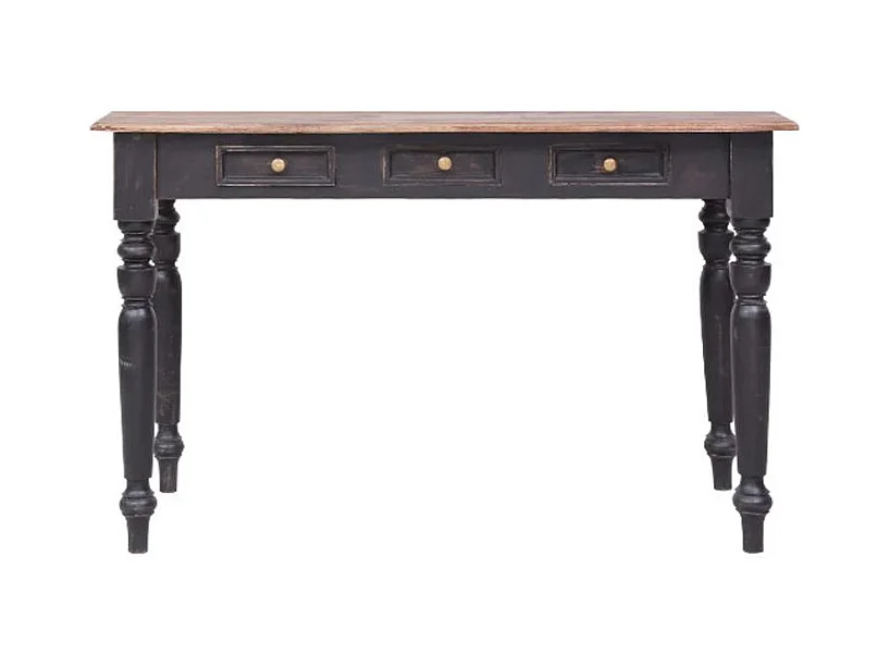Bureau 3 tiroirs acajou massif clair et noir Jeannel