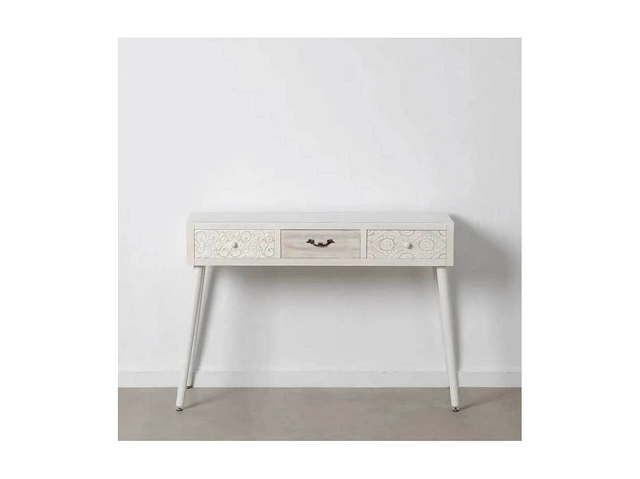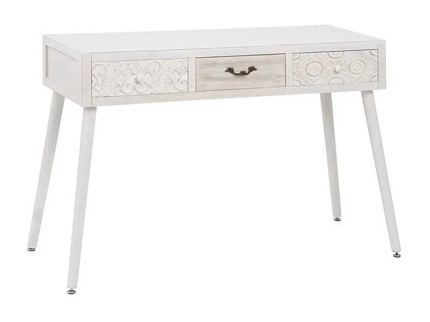 Bureau 3 tiroirs Bois clair/Blanc - LINO