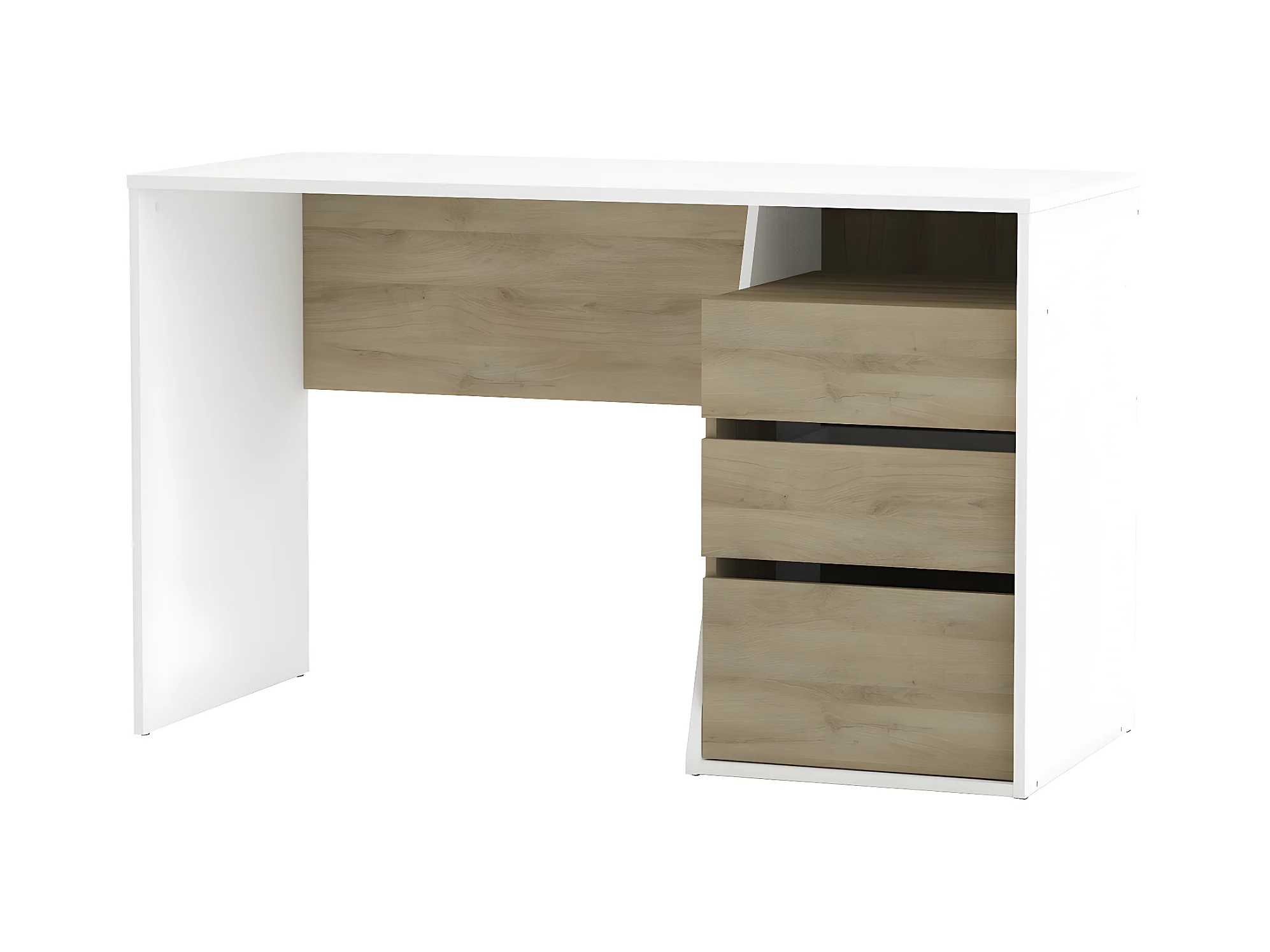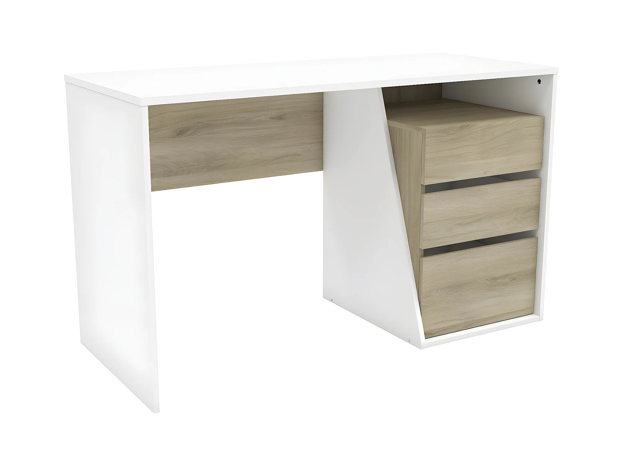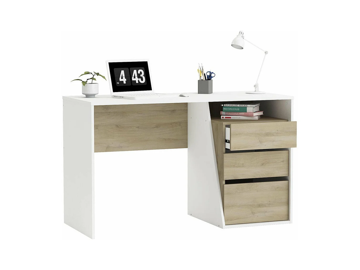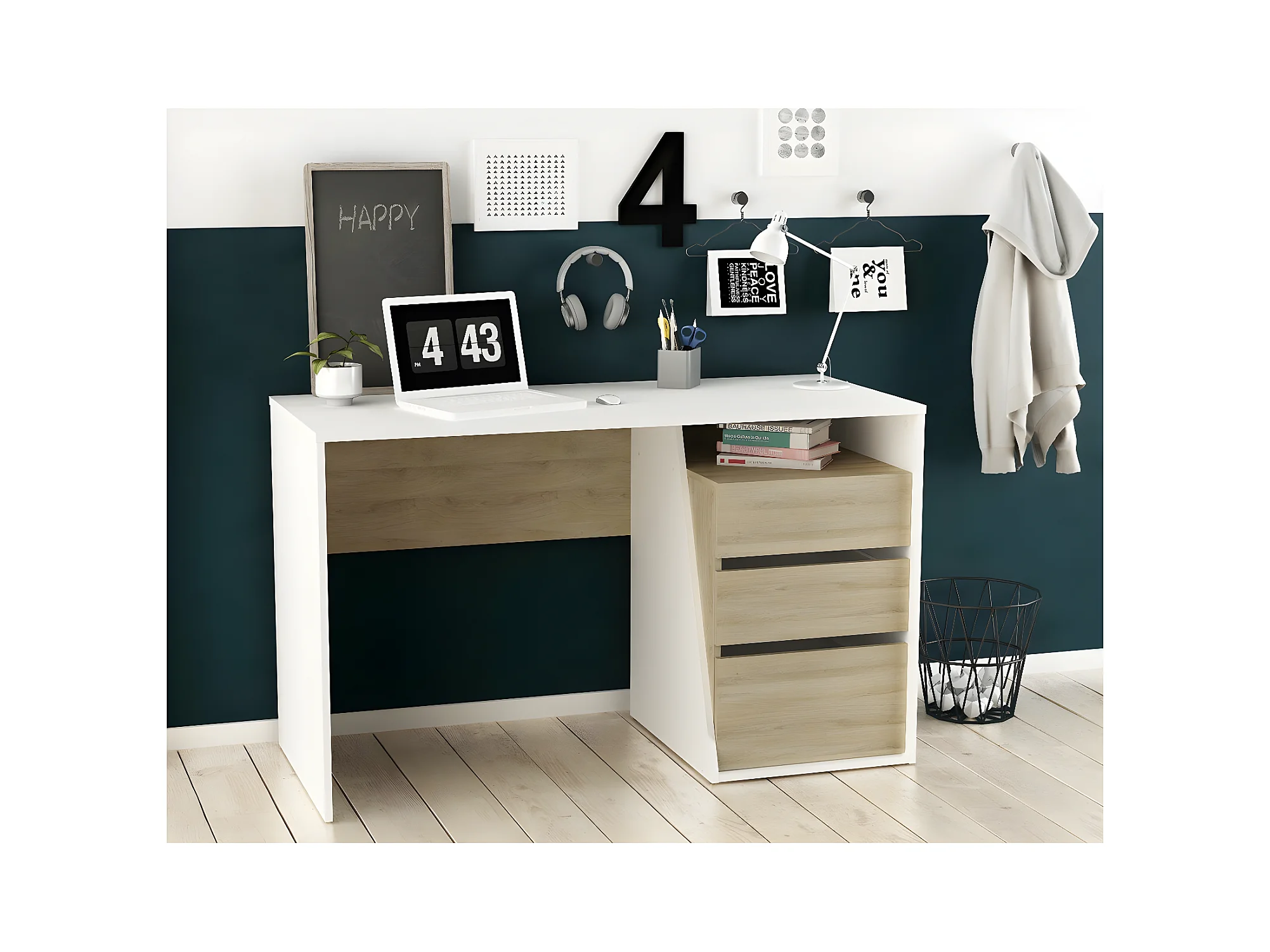 Bureau 3 Tiroirs décor bois et blanc L127 cm - Jefferson