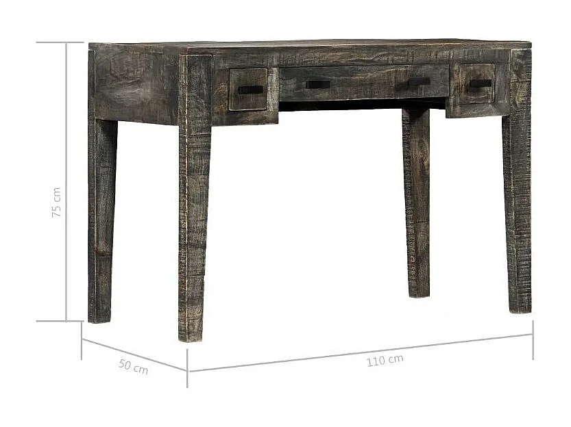 Bureau 3 tiroirs manguier massif noir Pinkie