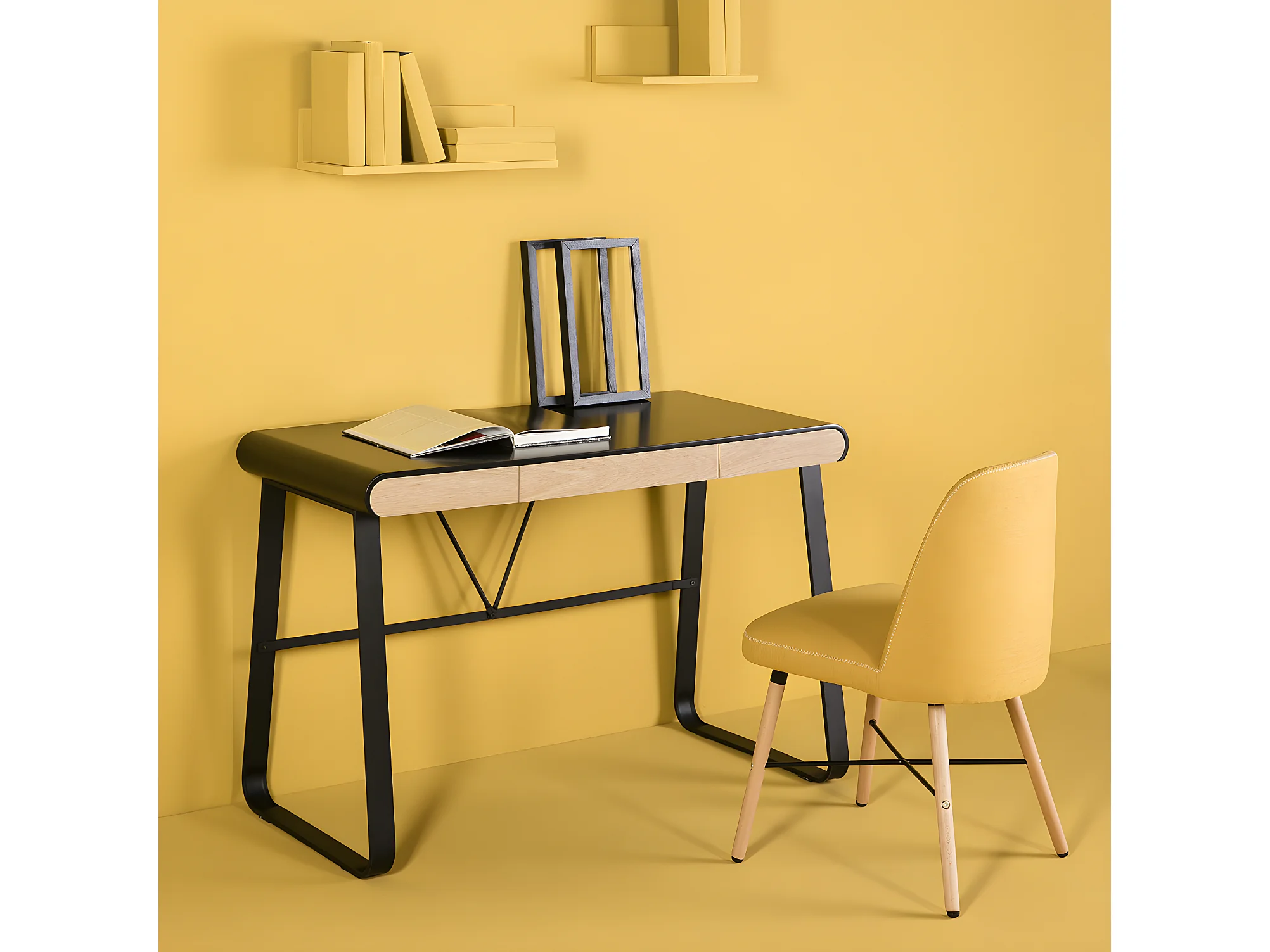 Bureau 3 tiroirs noir / effet chêne 110 cm - Aya
