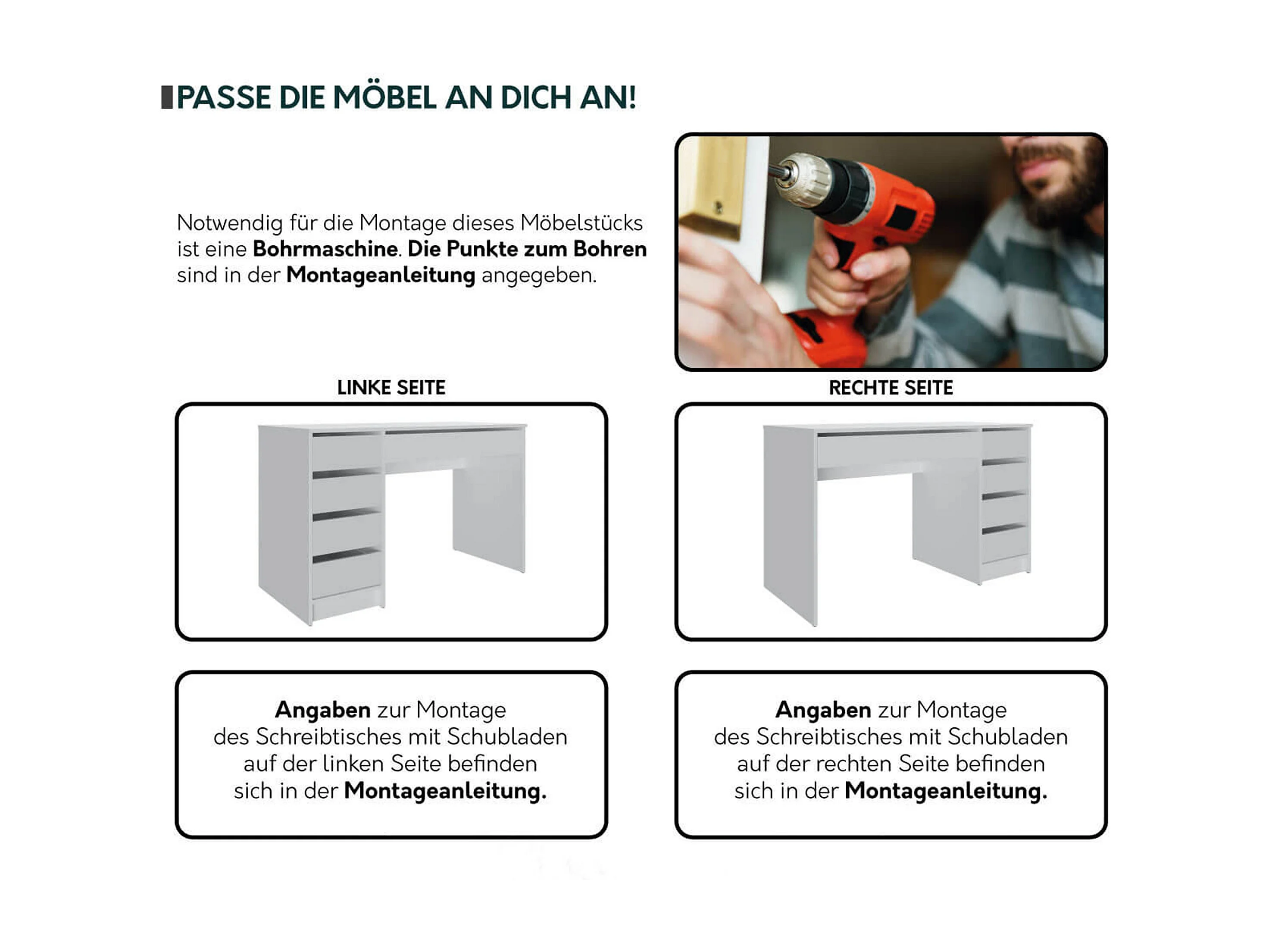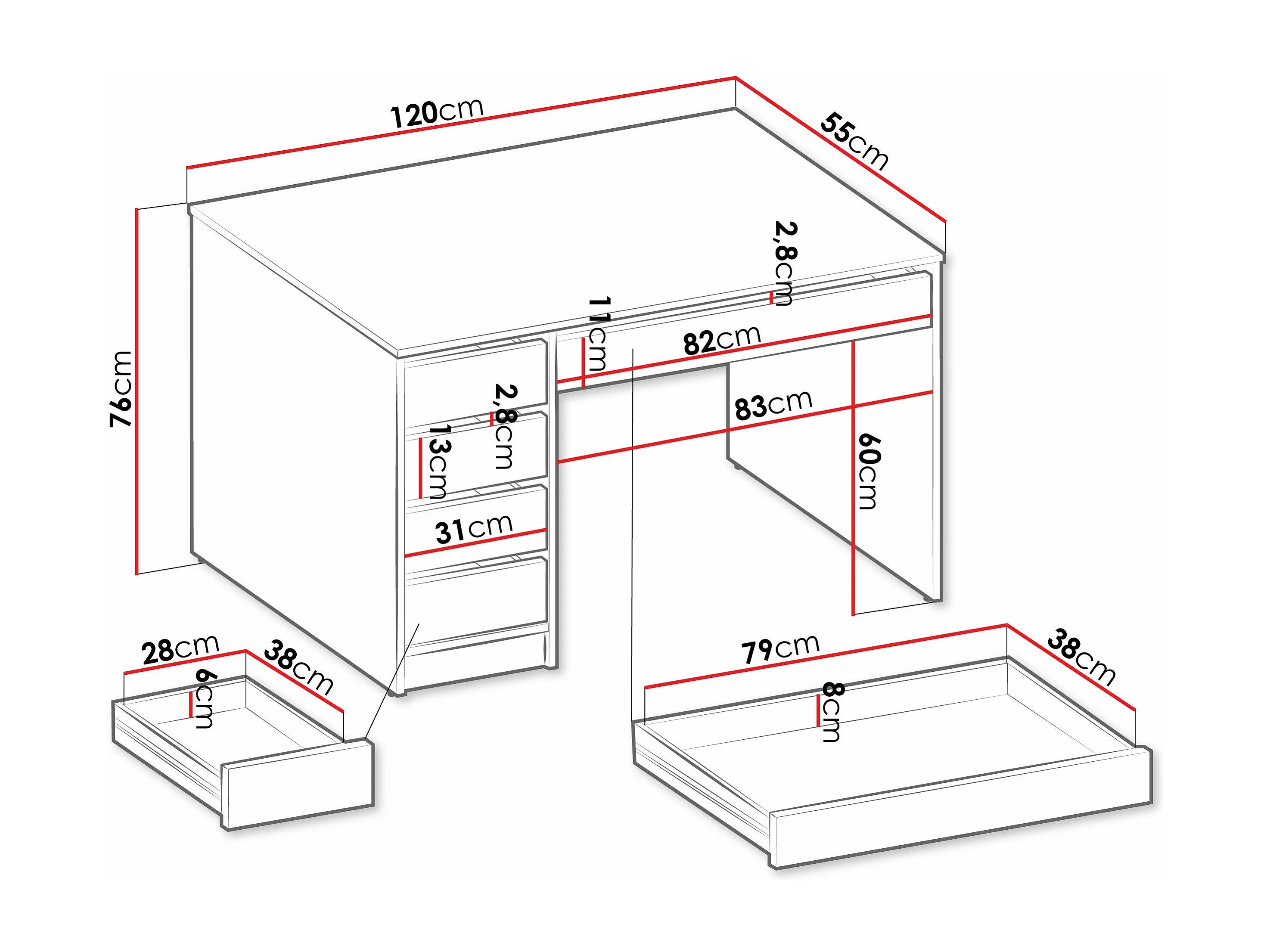 Bureau en bois 5 tiroirs "Malika" - 120 x 75 x 55 cm - Blanc