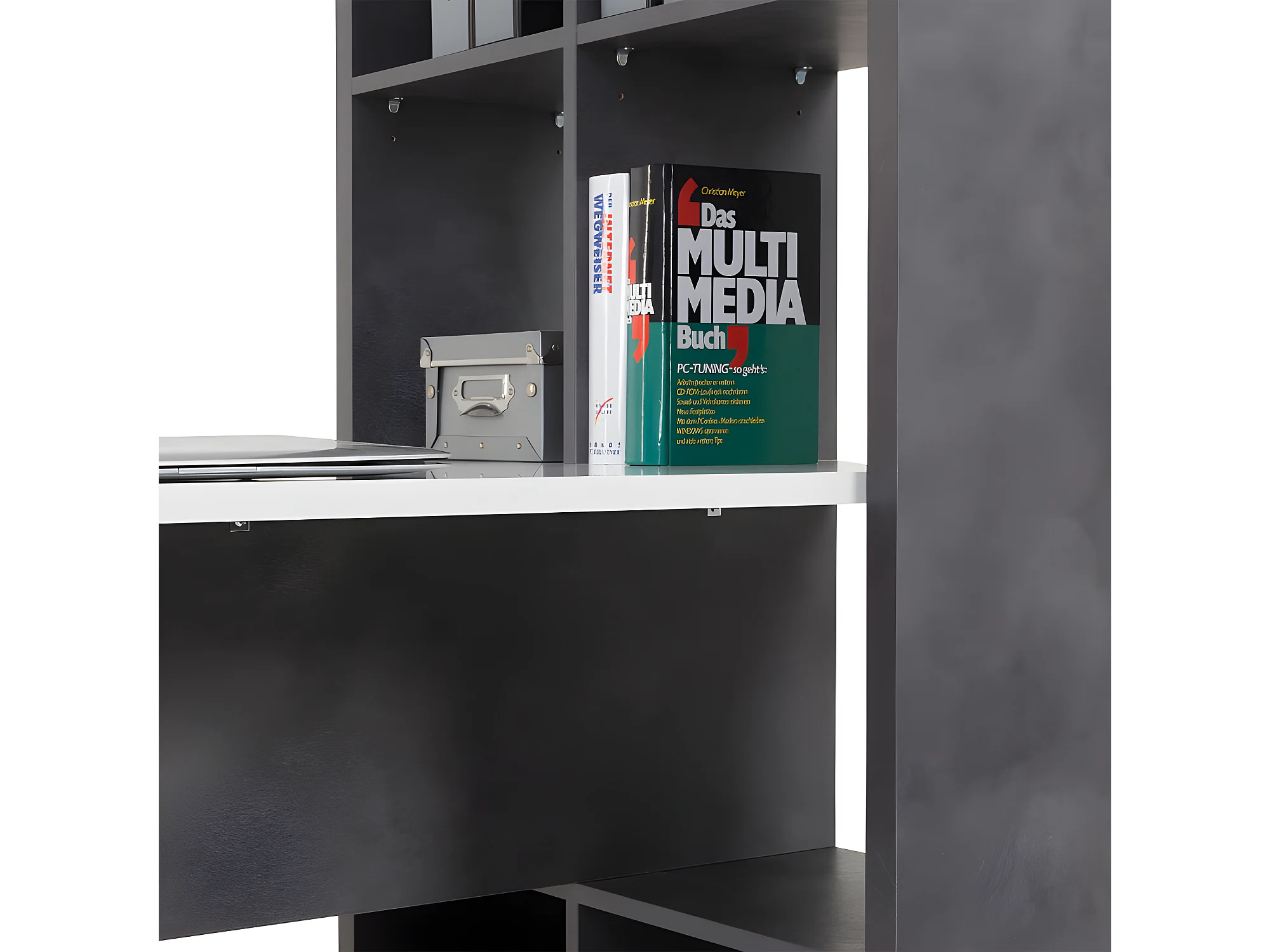 Bureau 8 rangement finition béton foncé texturé et blanc laqué - NICO