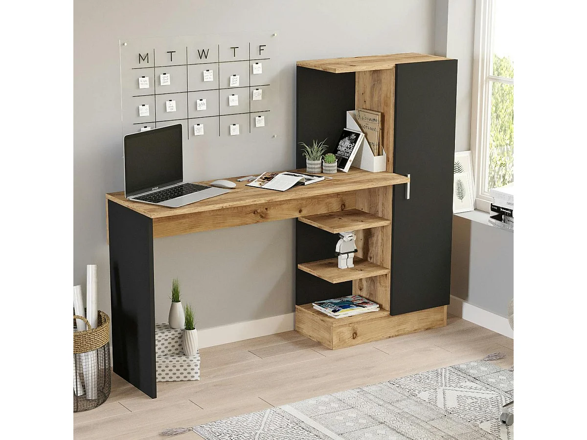Bureau ado noir décor bois avec rangement et étagères MARFA