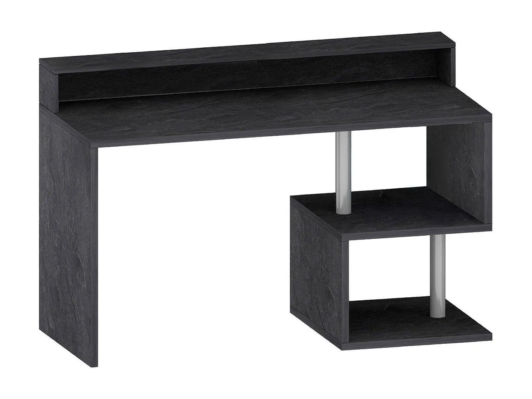 Bureau Alain, Bureau linéaire avec étagères de rangement avec lampes LED, Bureau polyvalent avec plateau, 140x60h93 cm, Ardoise