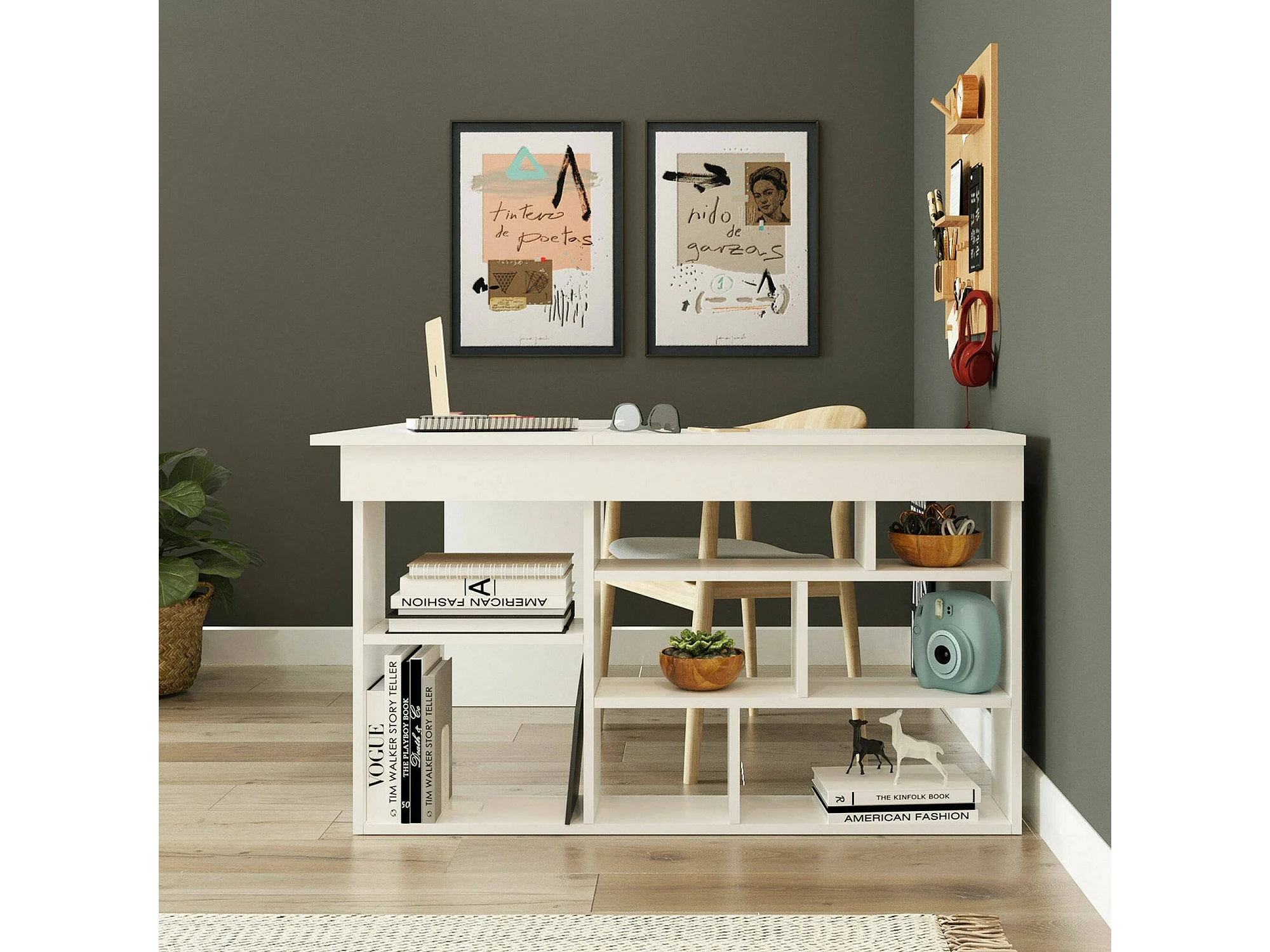 Bureau Angete, Pupitre polyvalent, Table de bureau pour PC, Plan de travail, 129x120h72 cm, Blanc