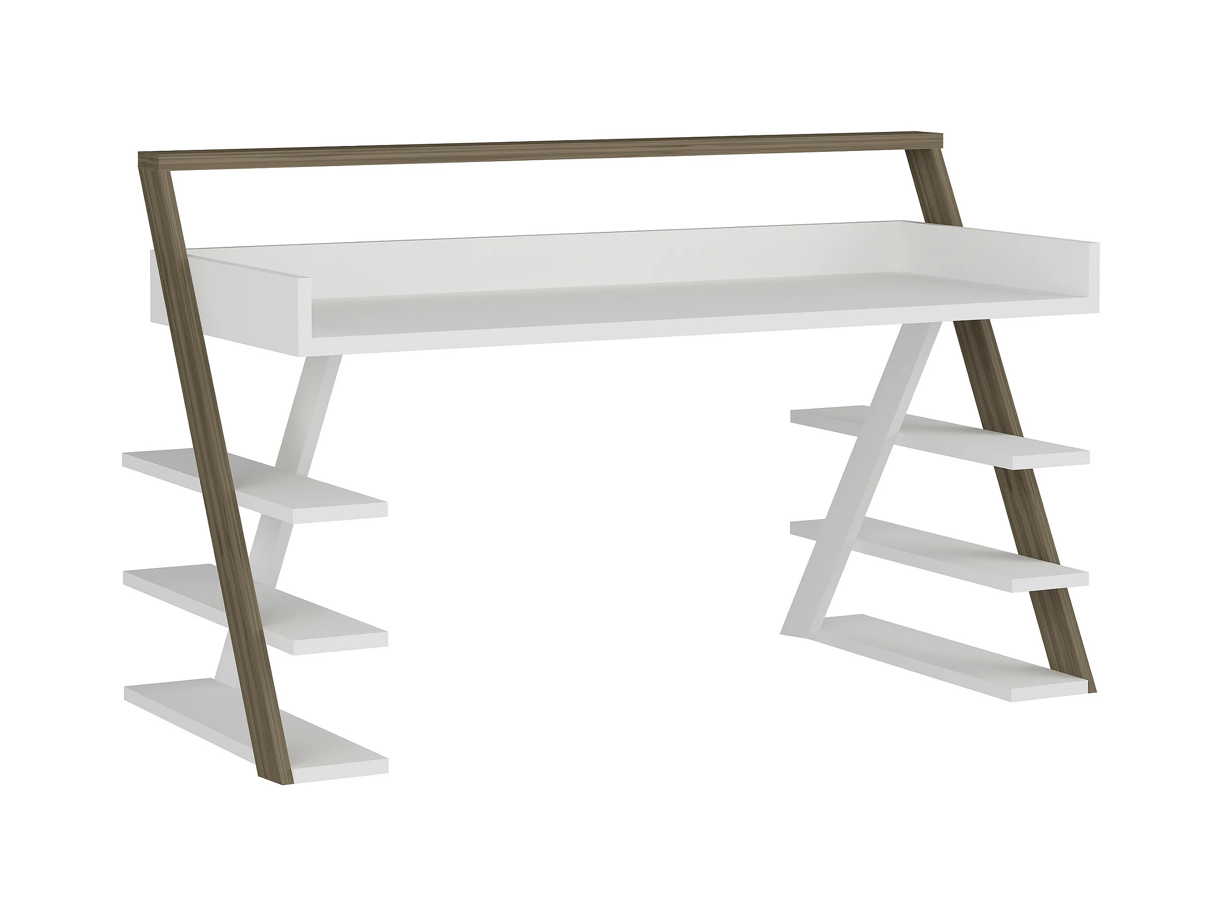 Bureau informatique design contemporain avec bibliothèque zig zag 4 étagères panneaux particules blanc