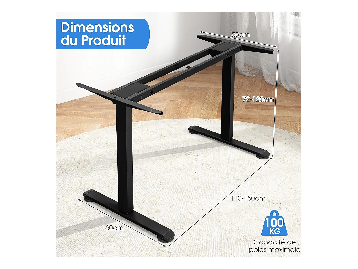 Bureau Assis-Debout Électrique à 2 Moteurs, Cadre de Bureau avec Largeur et Hauteur Réglables, Contrôle à 4 Boutons de Mémoires, Dispositif Anti-Collision (Noir)