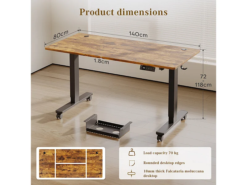 Bureau assis-debout électrique avec port de chargement USB-C, bureau ergonomique à hauteur réglable avec passe-câbles, pour bureau à domicile