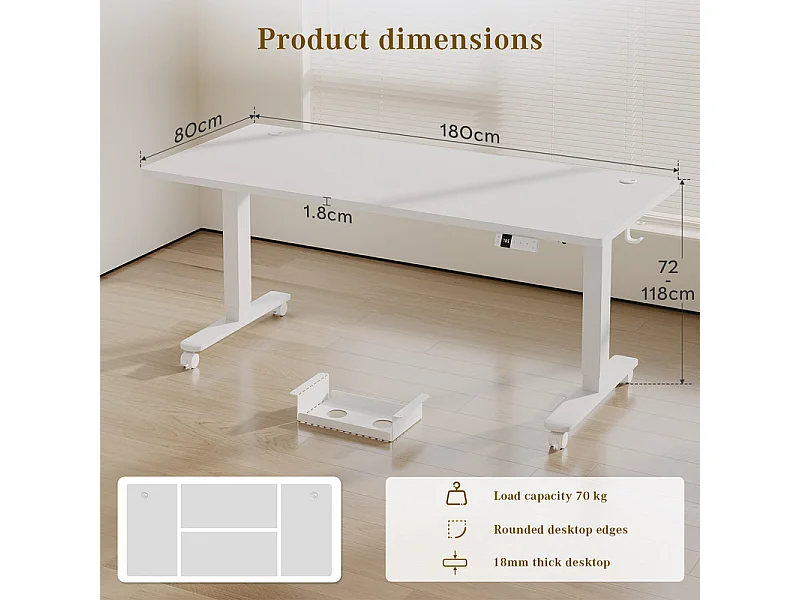 Bureau assis-debout électrique avec port de chargement USB-C, bureau ergonomique à hauteur réglable avec passe-câbles, pour bureau à domicile