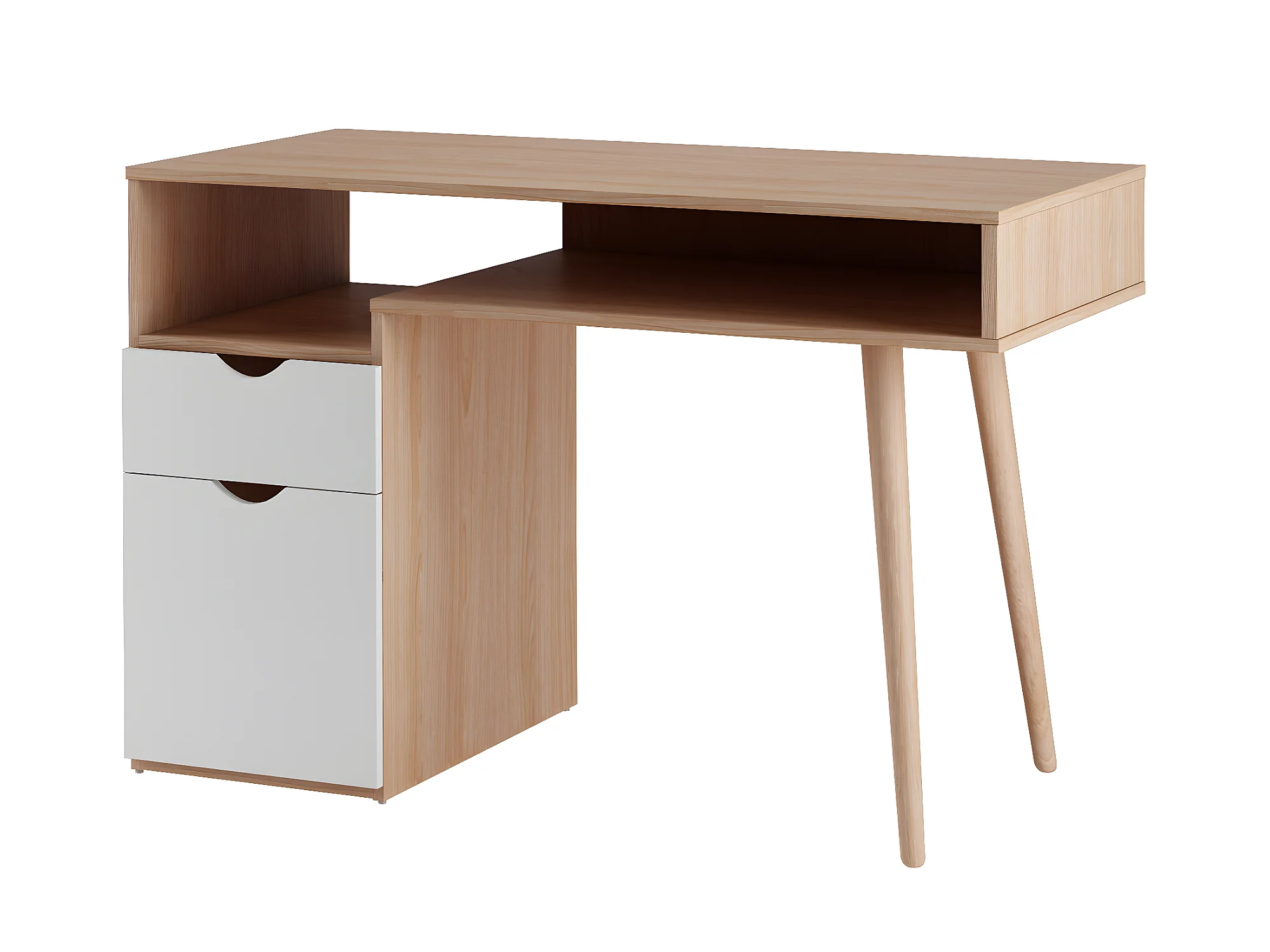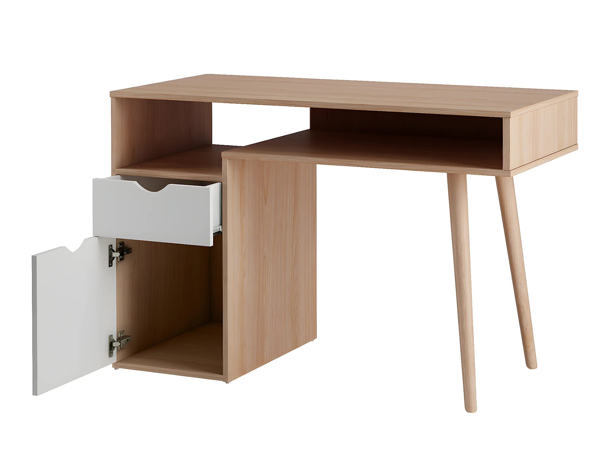 Scandi | Bureau avec 1 porte et 1 tiroir en MDF blanc et chêne