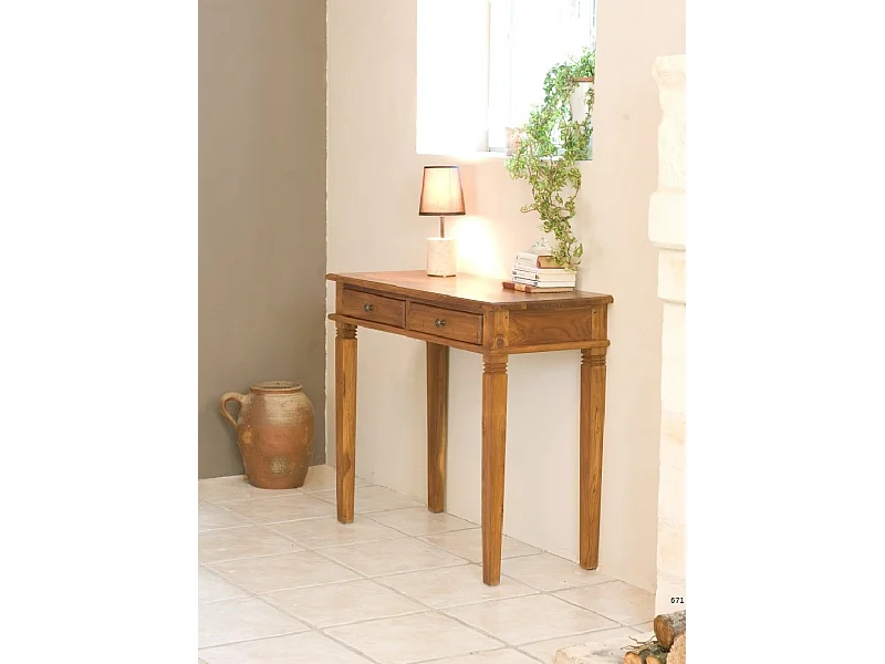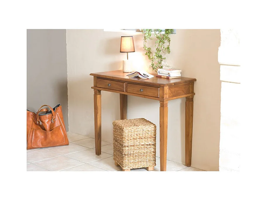 API - Bureau marron bois Teck 2 tiroirs