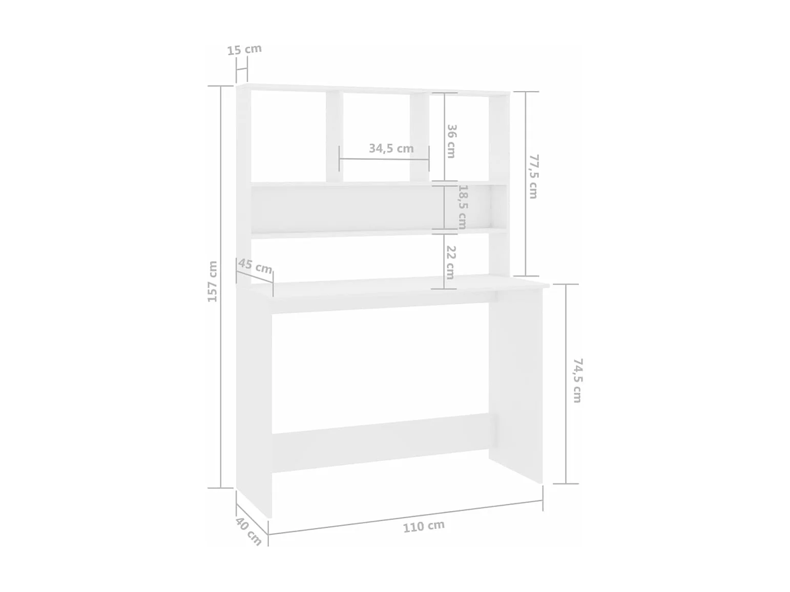 Bureau avec étagères Blanc brillant 110 x 45 x 157 cm Aggloméré