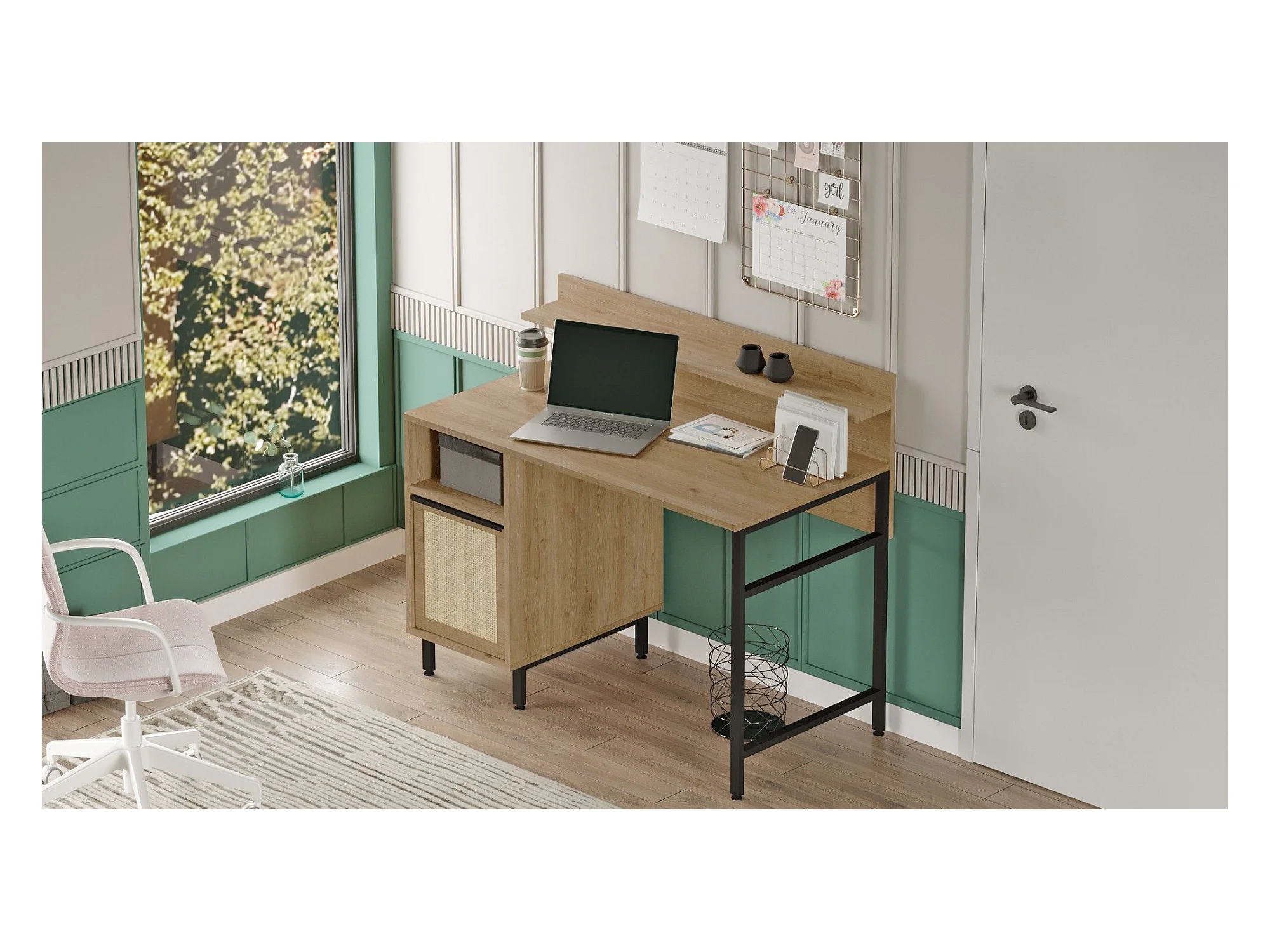 Bureau avec rangement et étagère Evelis L120cm Bois et Rotin clair