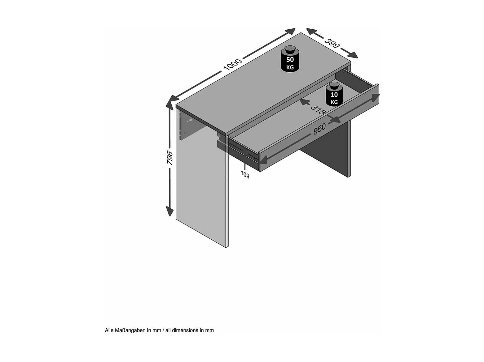 Console 1 Tiroir Design "Kherer" 100cm Blanc