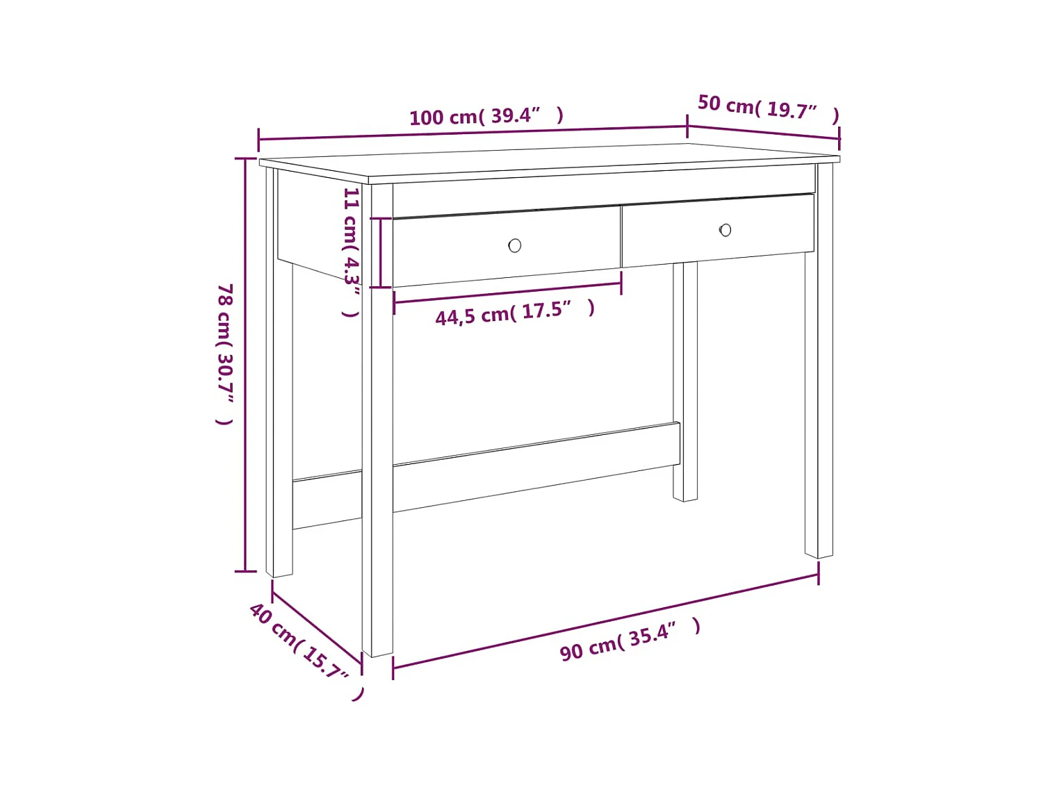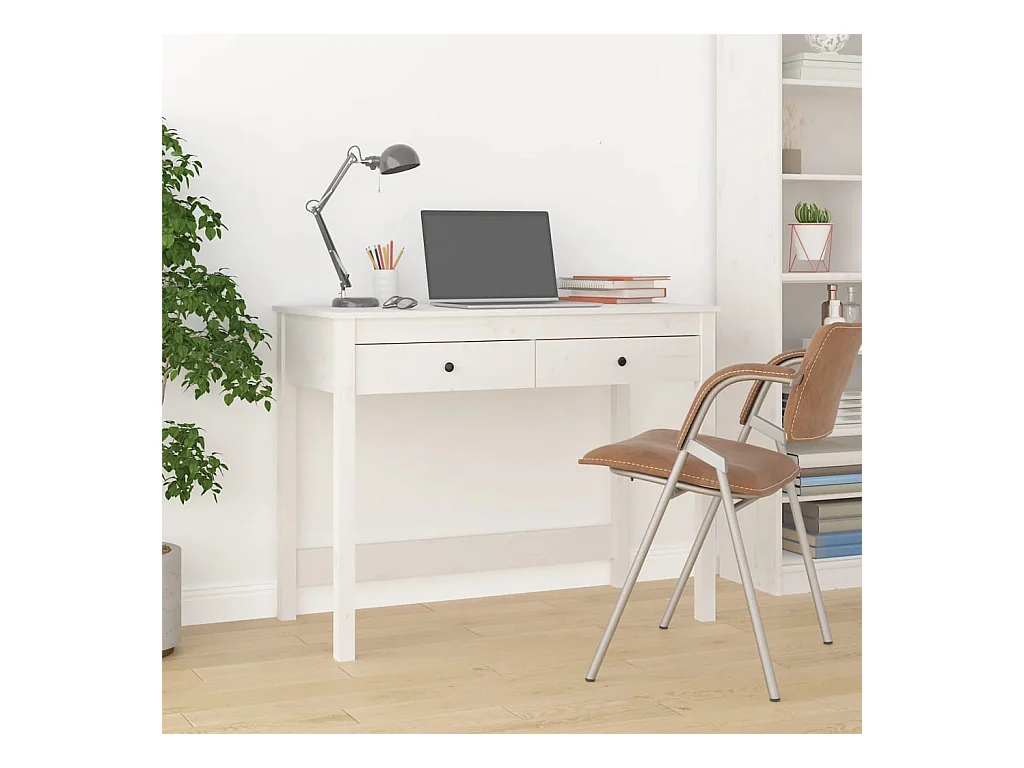 Bureau avec tiroirs Blanc 100x50x78 Bois massif de pin
