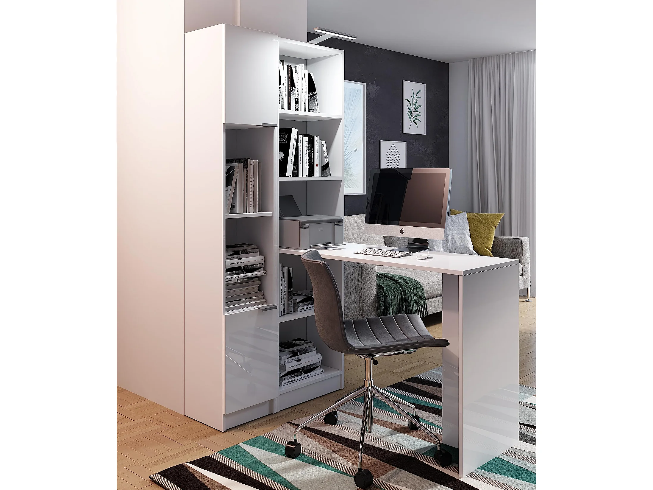 Bureau B-1 avec étagère blanc