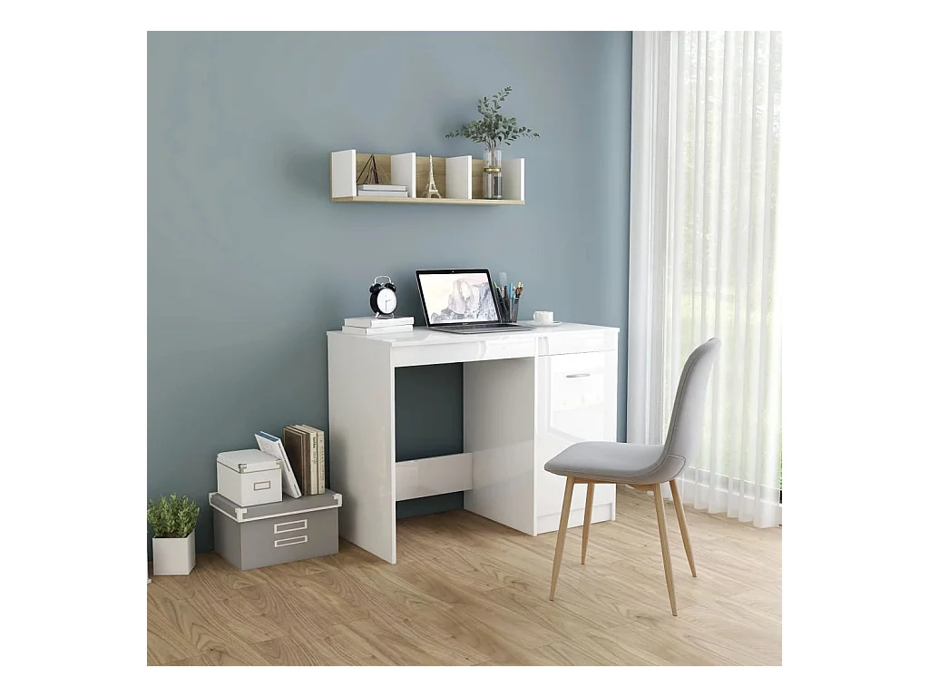 Bureau et tiroirs Blanc brillant 102x50x76 cm Bois d'ingénierie
