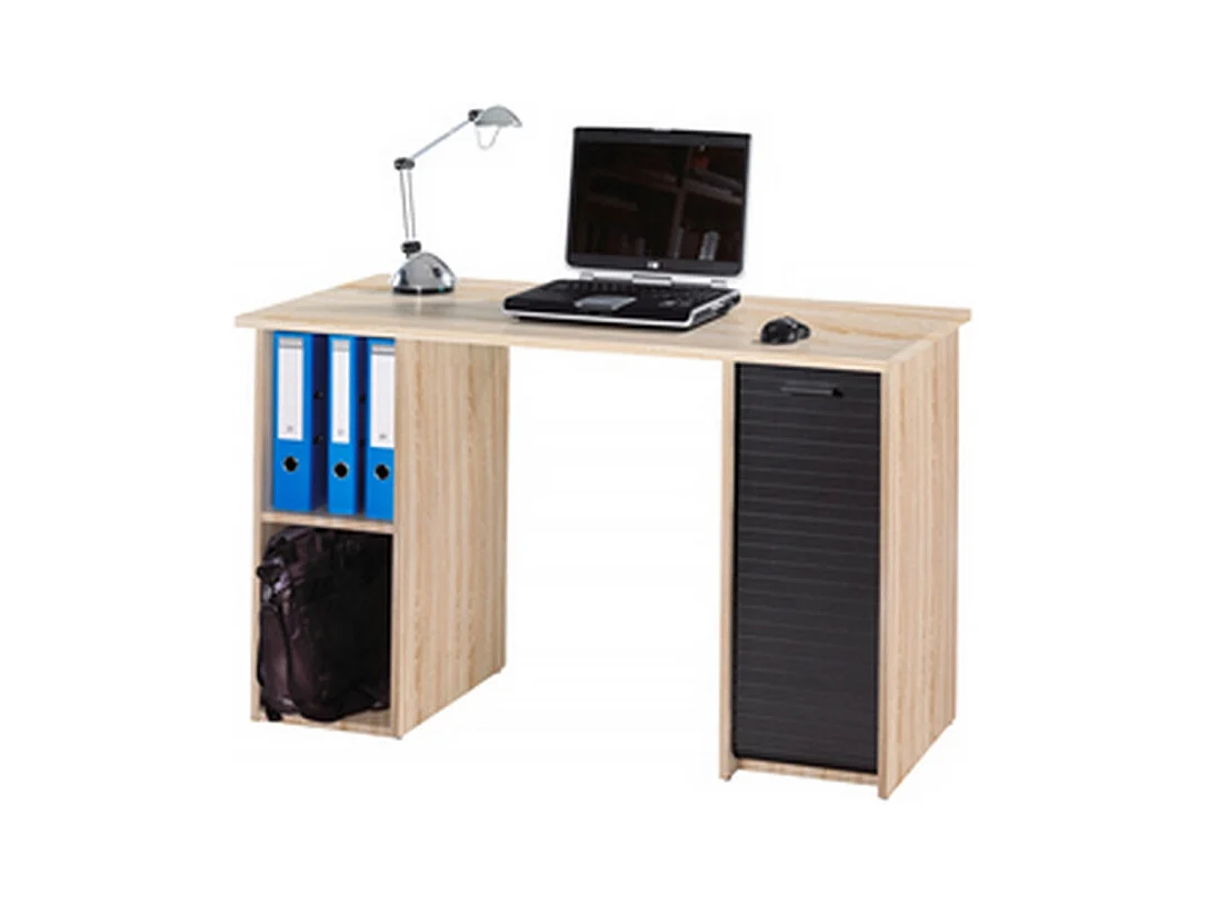 Bureau Chêne et Noir 2 Caissons 4 Niches 130 x 74 x 50 cm