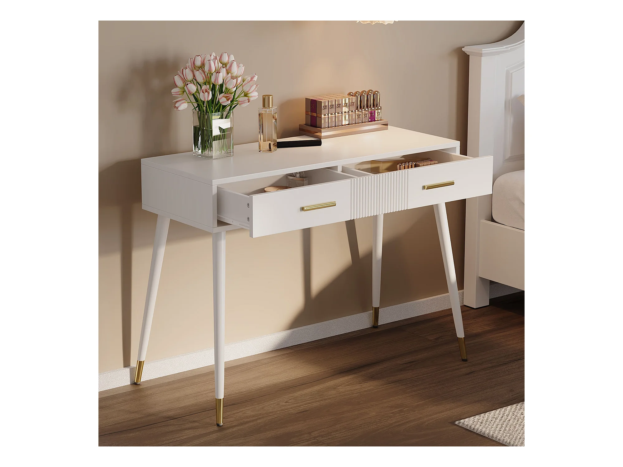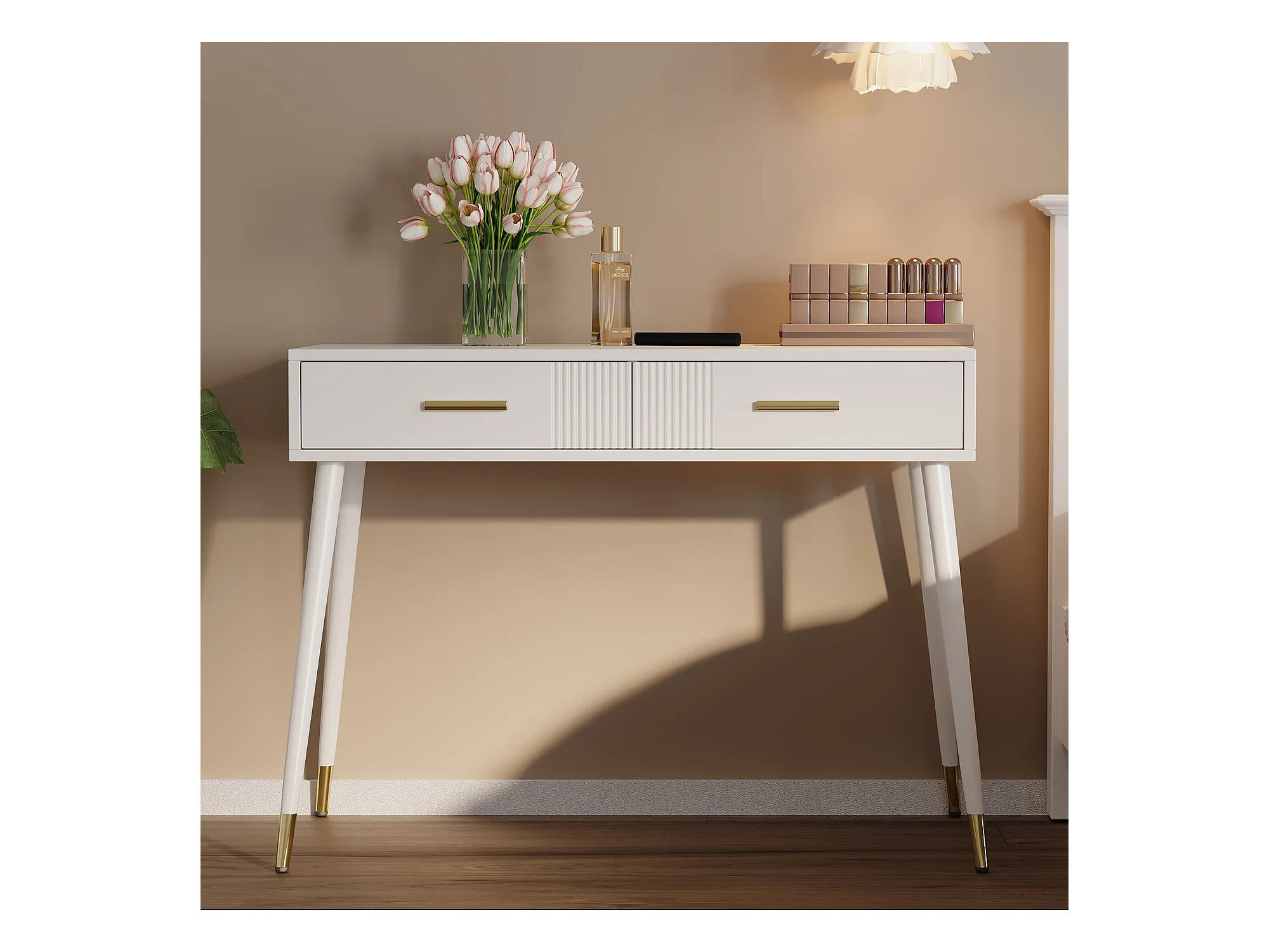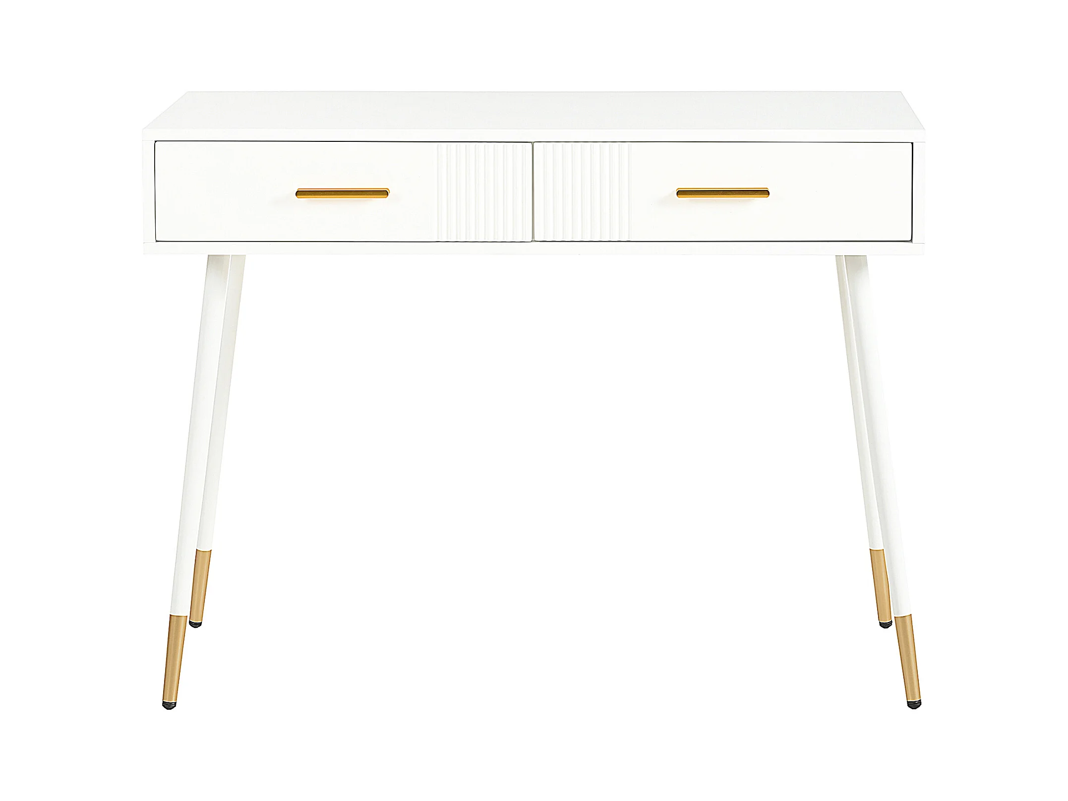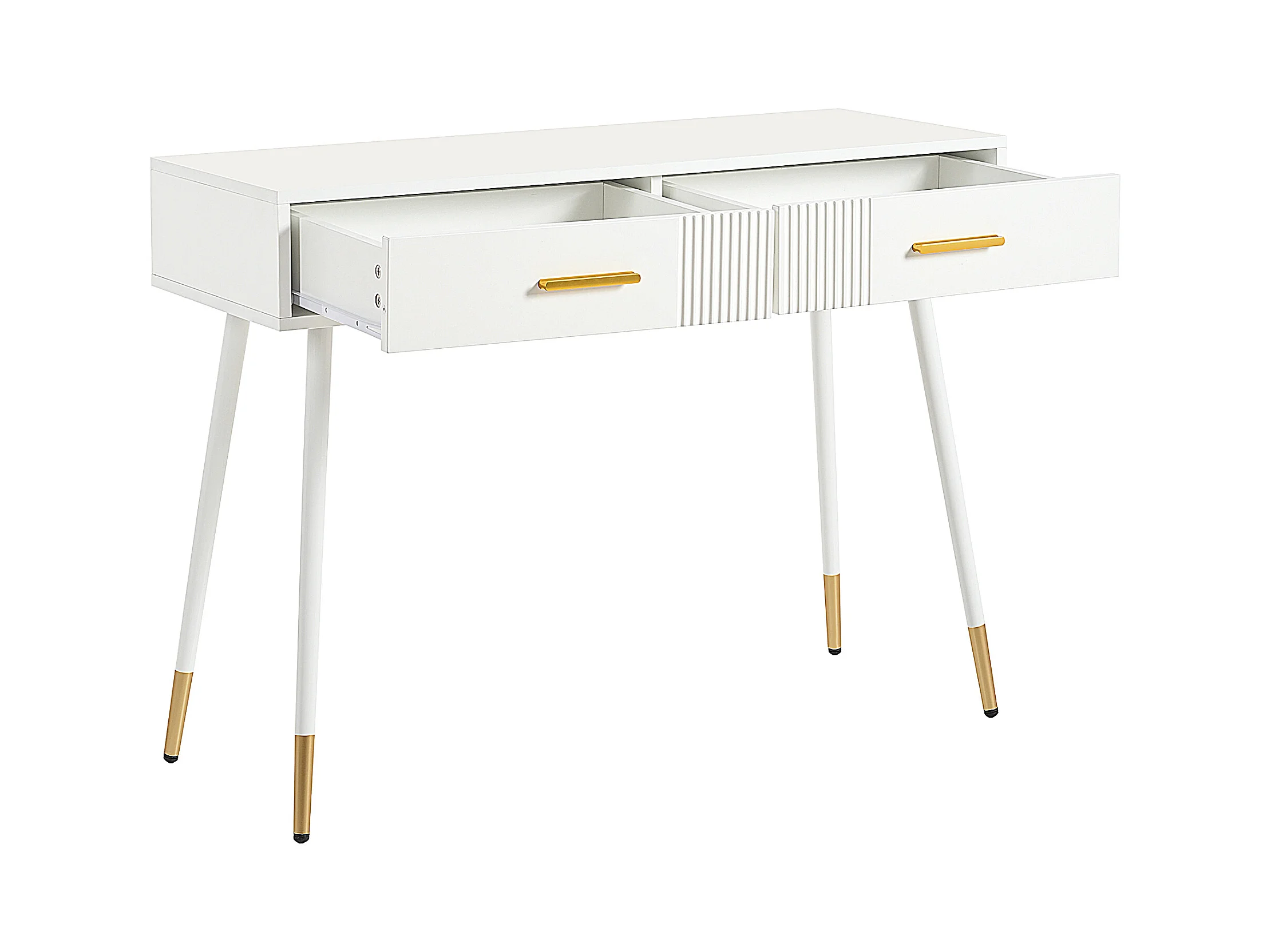 Bureau, coiffeuse avec 2 tiroirs, pieds métalliques, MDF, blanc (100x40x76 cm)