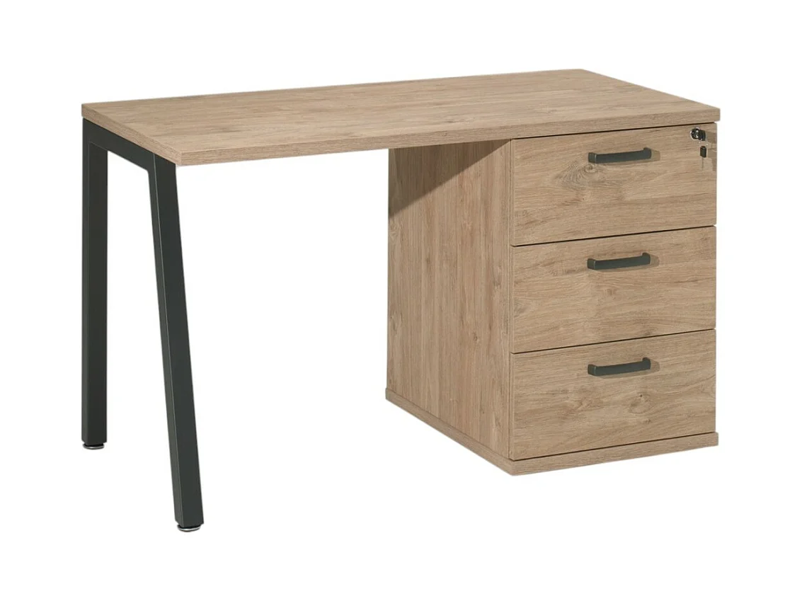 Bureau robuste chêne doré avec caisson 3 tiroirs – Collection SUZI – Spécial petit espace