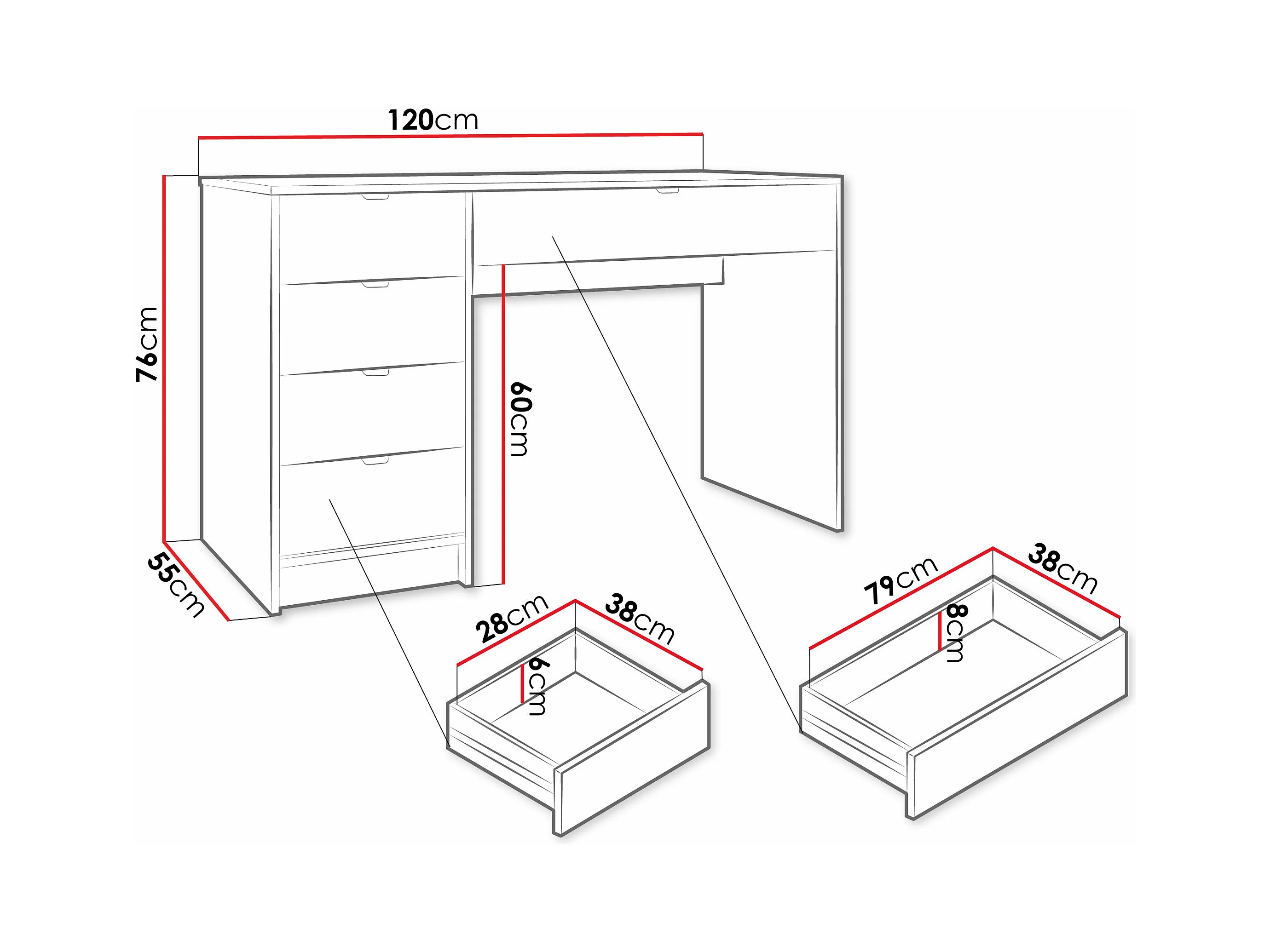 Bureau Comfivo Larmire 100, Avec tiroirs, Nombre de tiroirs: 5, 76x120x55cm, Beige