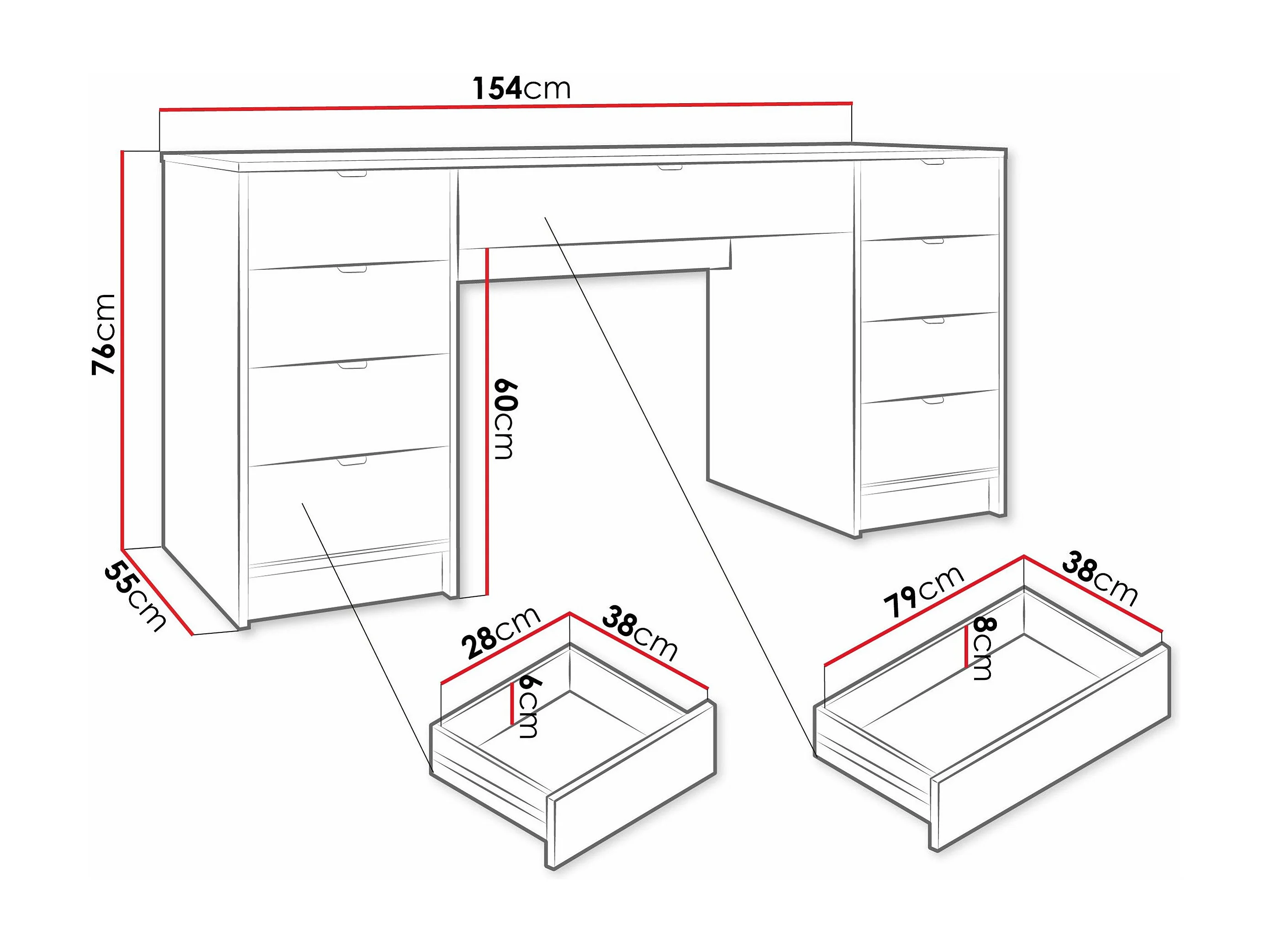 Bureau Comfivo Larmire 110, Avec tiroirs, 76x154x55cm, Beige