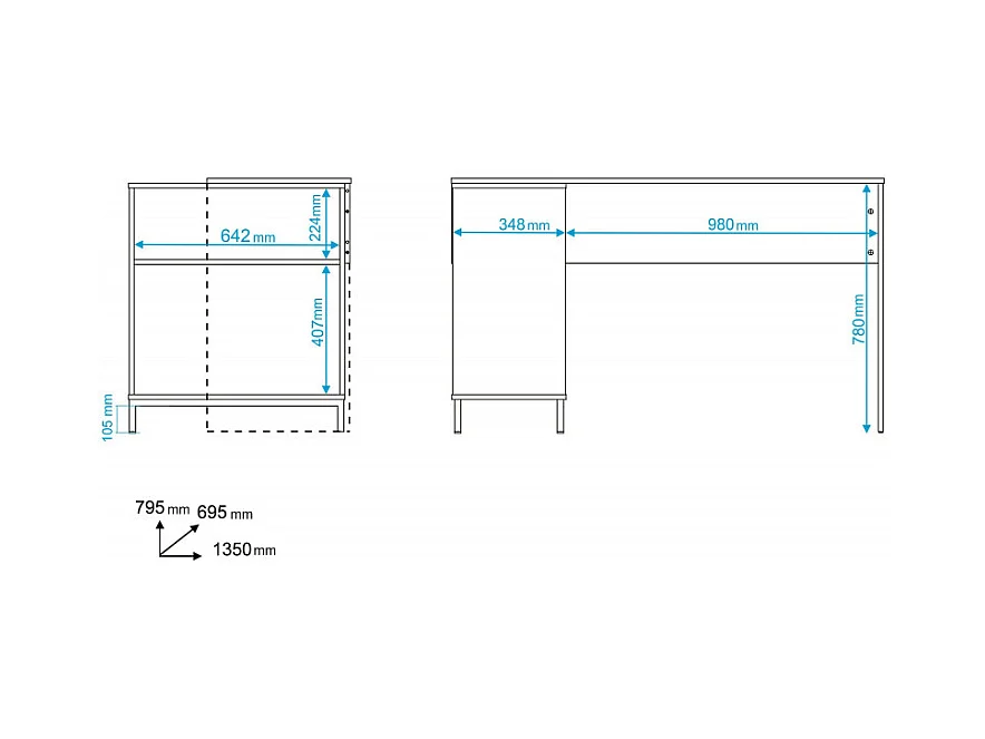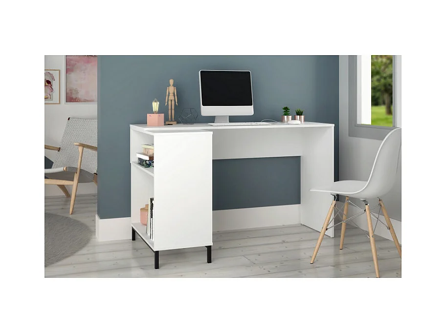Bureau d'Angle Blanc et Meuble de Rangement 2 Niches