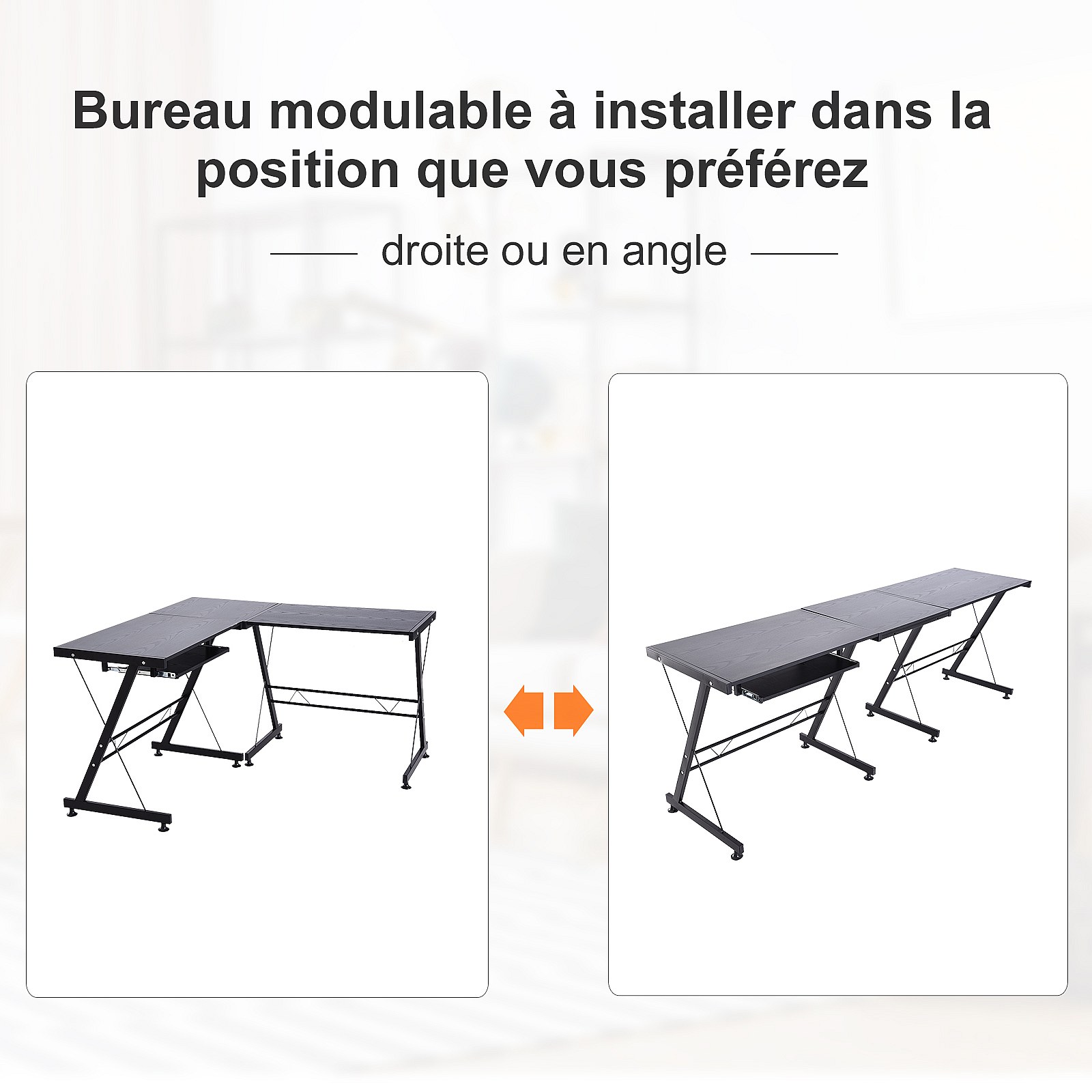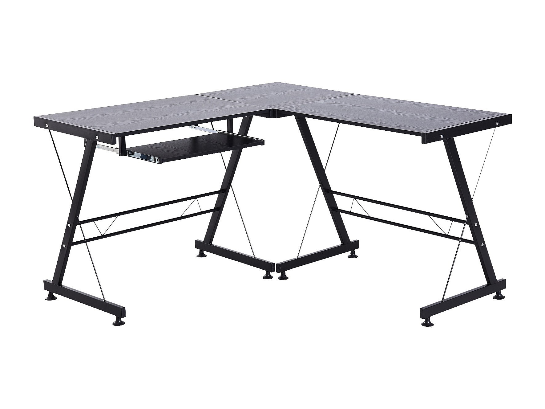 Bureau d'angle bureau informatique design moderne métal MDF imitation veinage bois noir