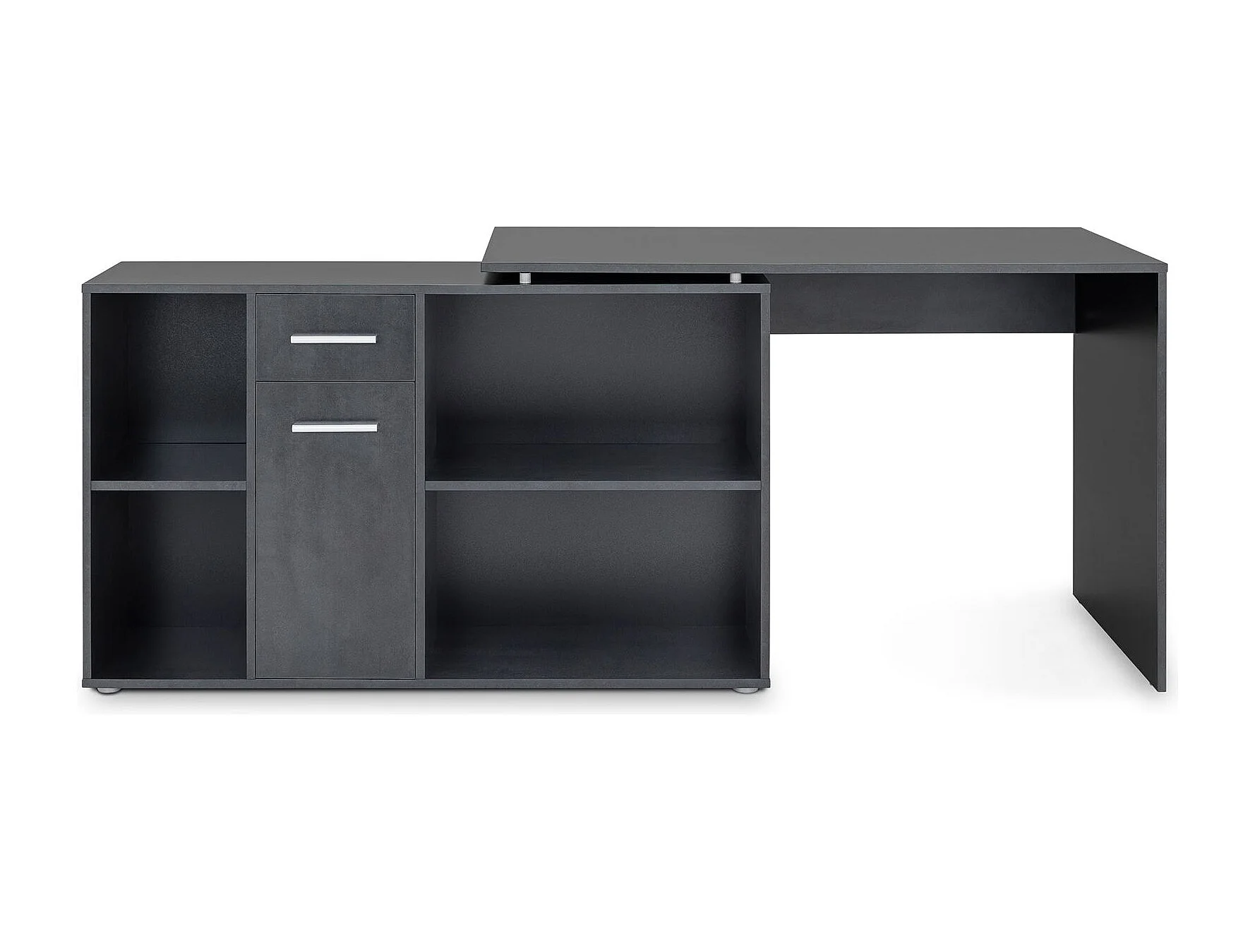 Bureau d'angle CARMEN table avec meuble de rangement intégré 4 étagères 1 porte et 1 tiroir, décor béton foncé