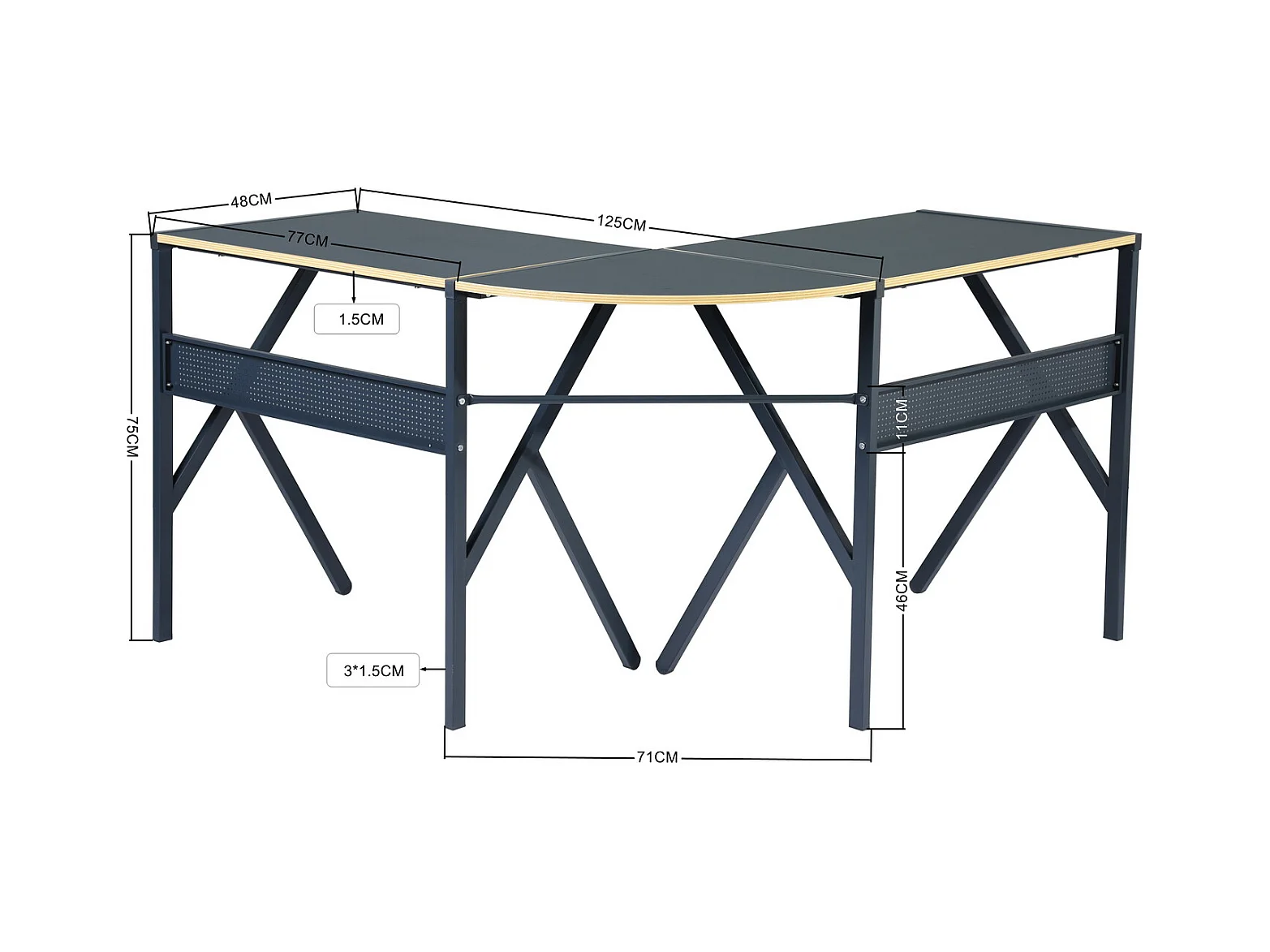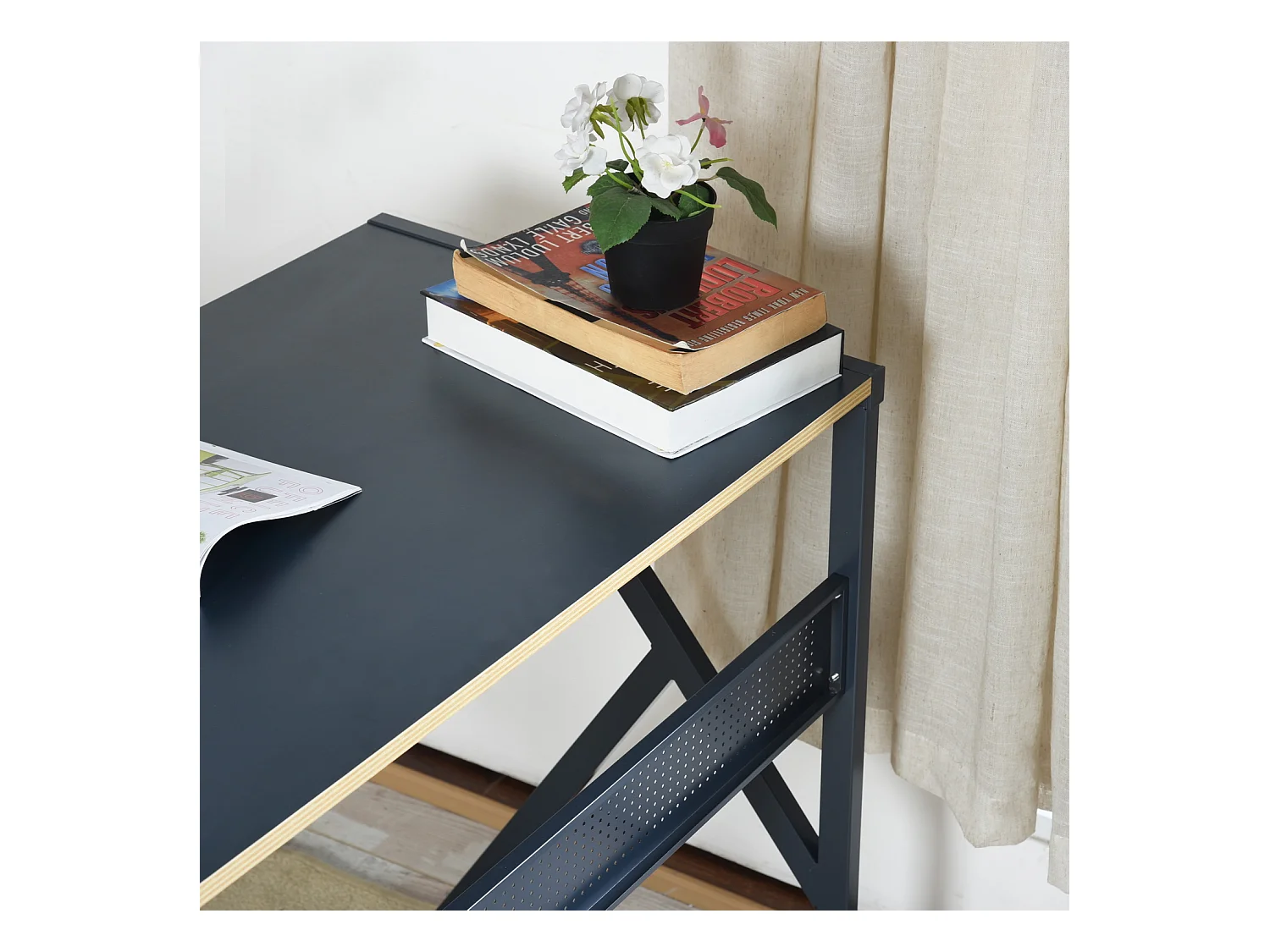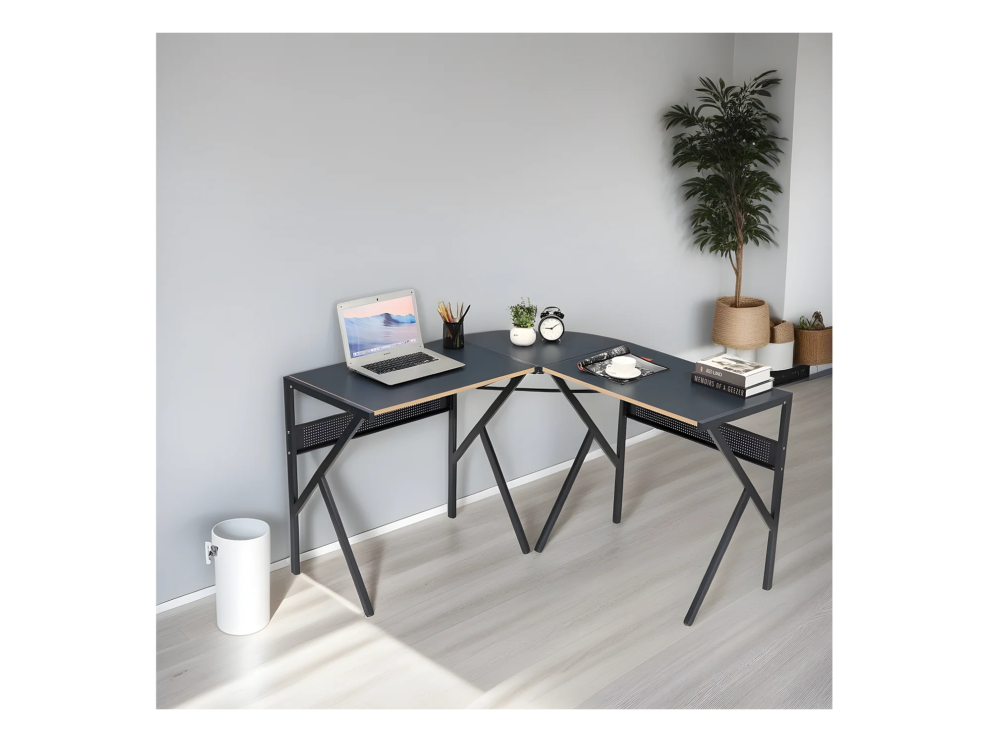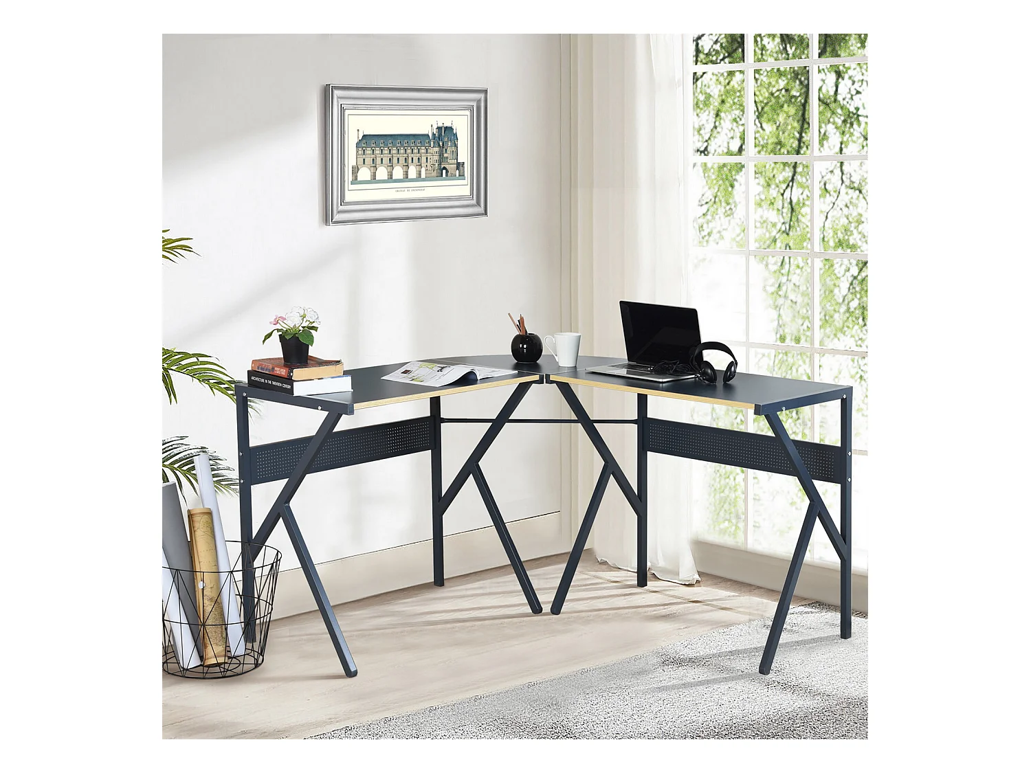 Bureau d'angle effet bois noir structure métallique ALISSON