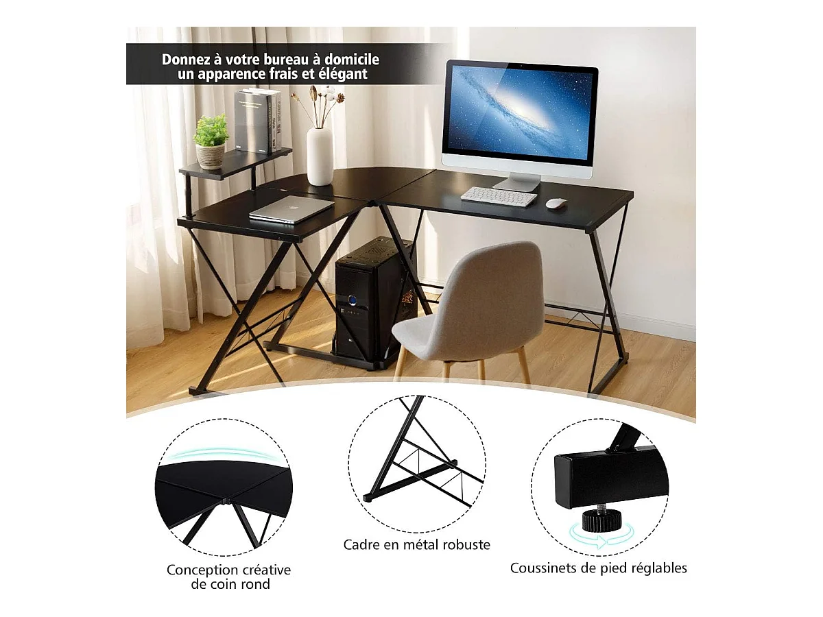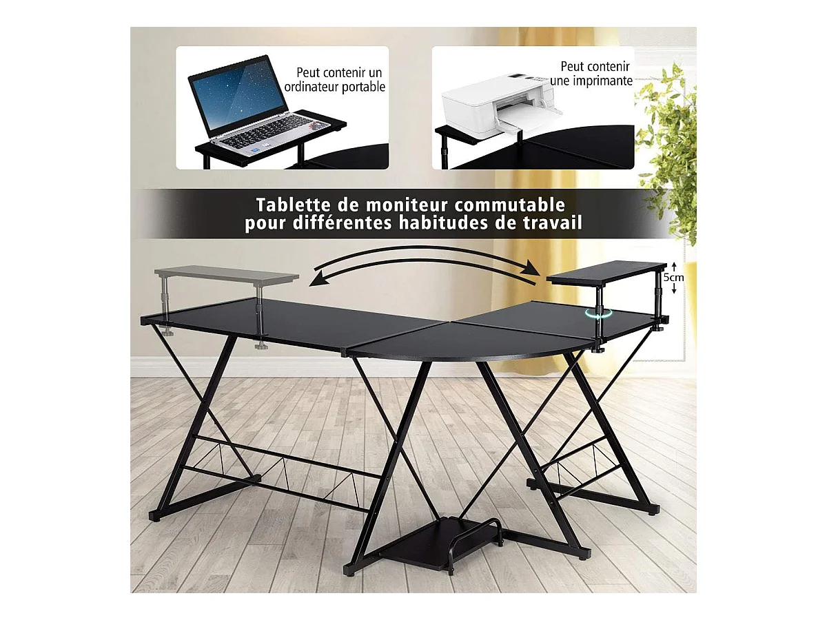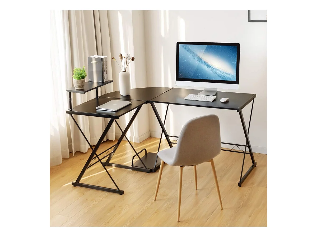 Bureau d'Angle en Forme de L Détachable avec Support pour Moniteur,Compartiment de Rangement 147x112x79CM Industriel Noir