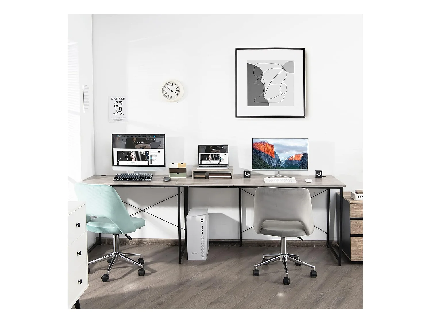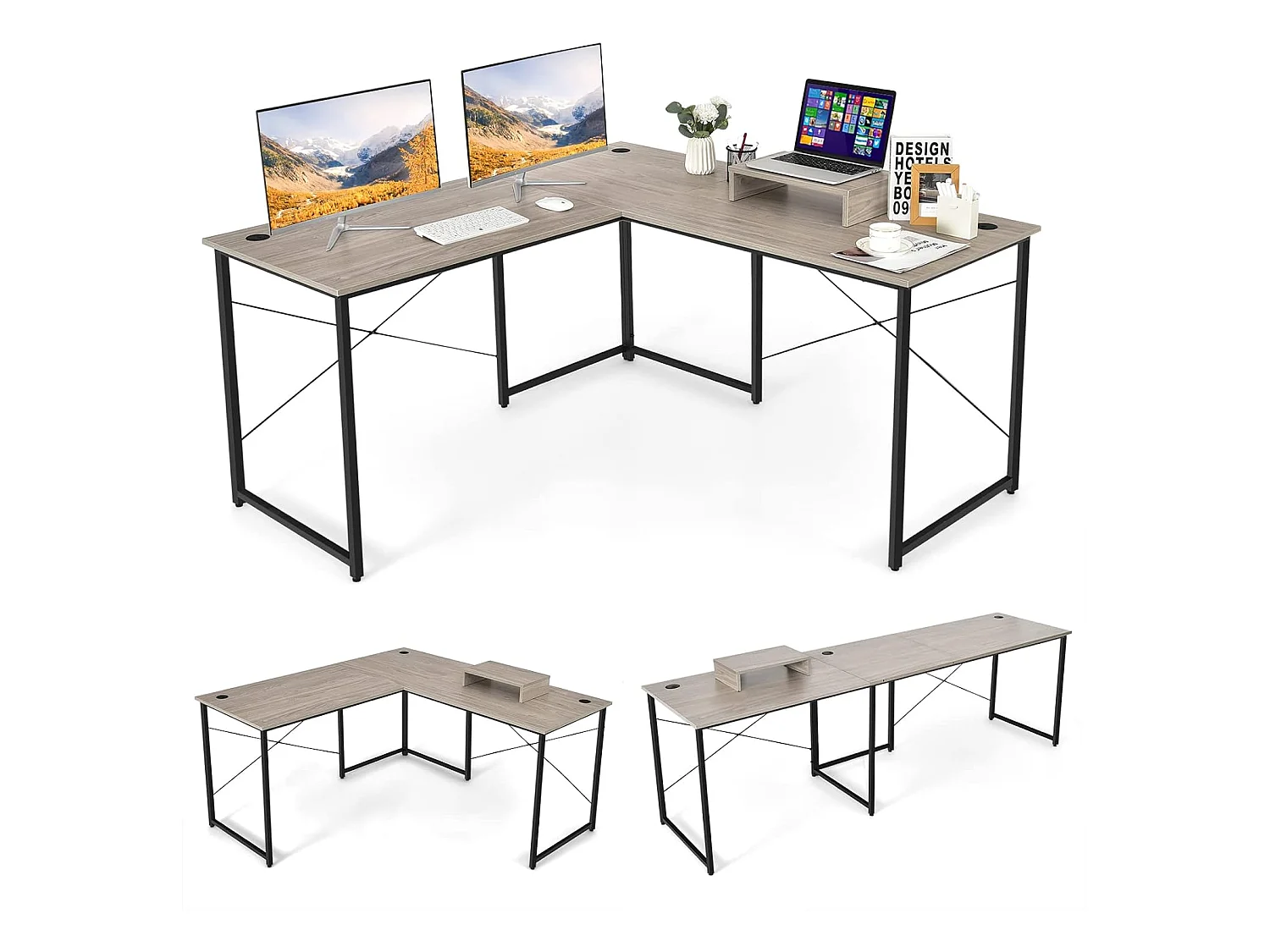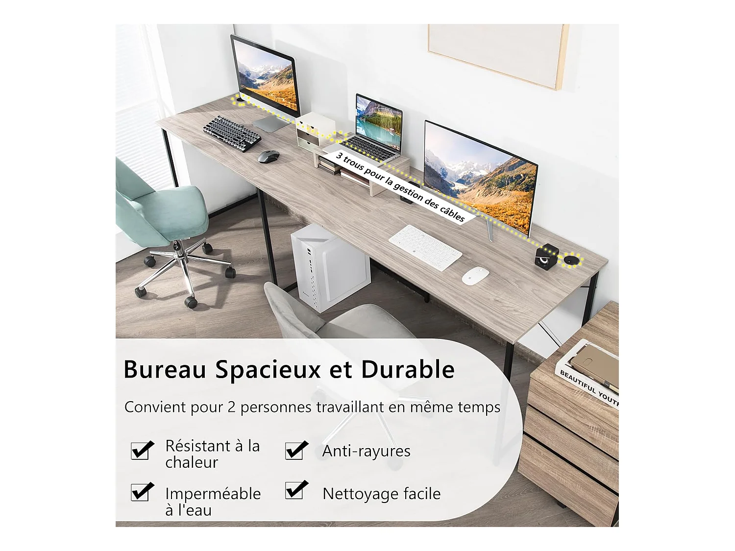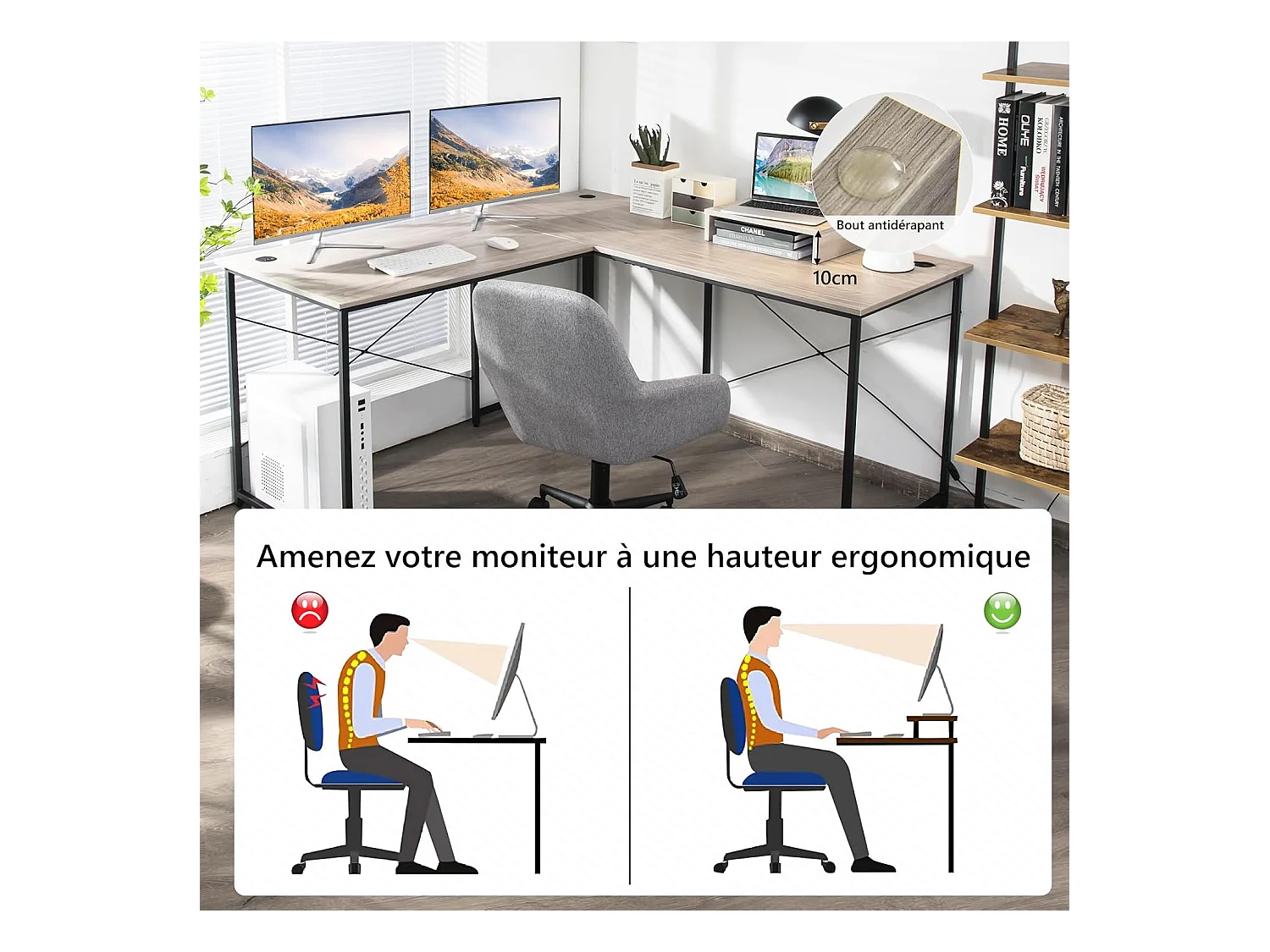Bureau d'angle en L Réversible avec Support de Moniteur/Poste de Travail Industriel pour 2 Personnes avec 3 Trous de Câble-Assemblage Facile-150 x 150 x 74 CM, Gris