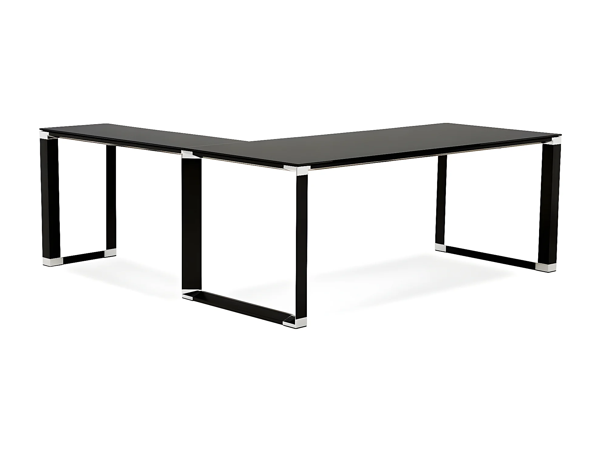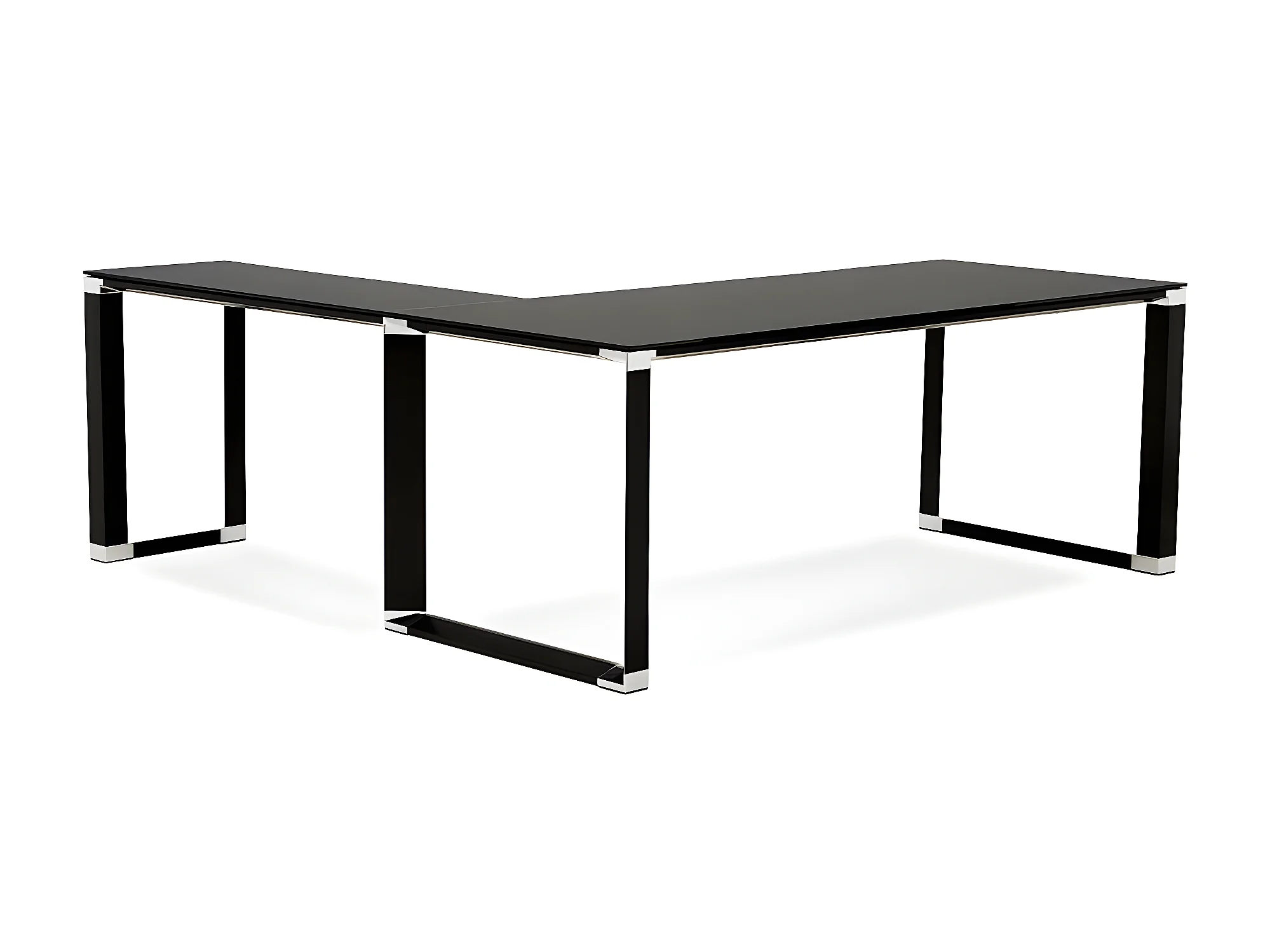 Bureau d'Angle en Verre Design "Hovik" 200cm Noir