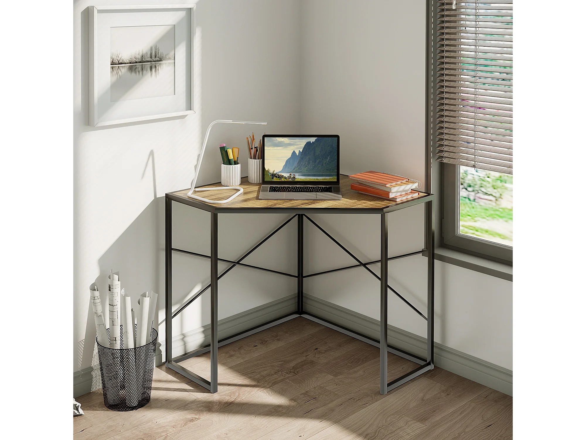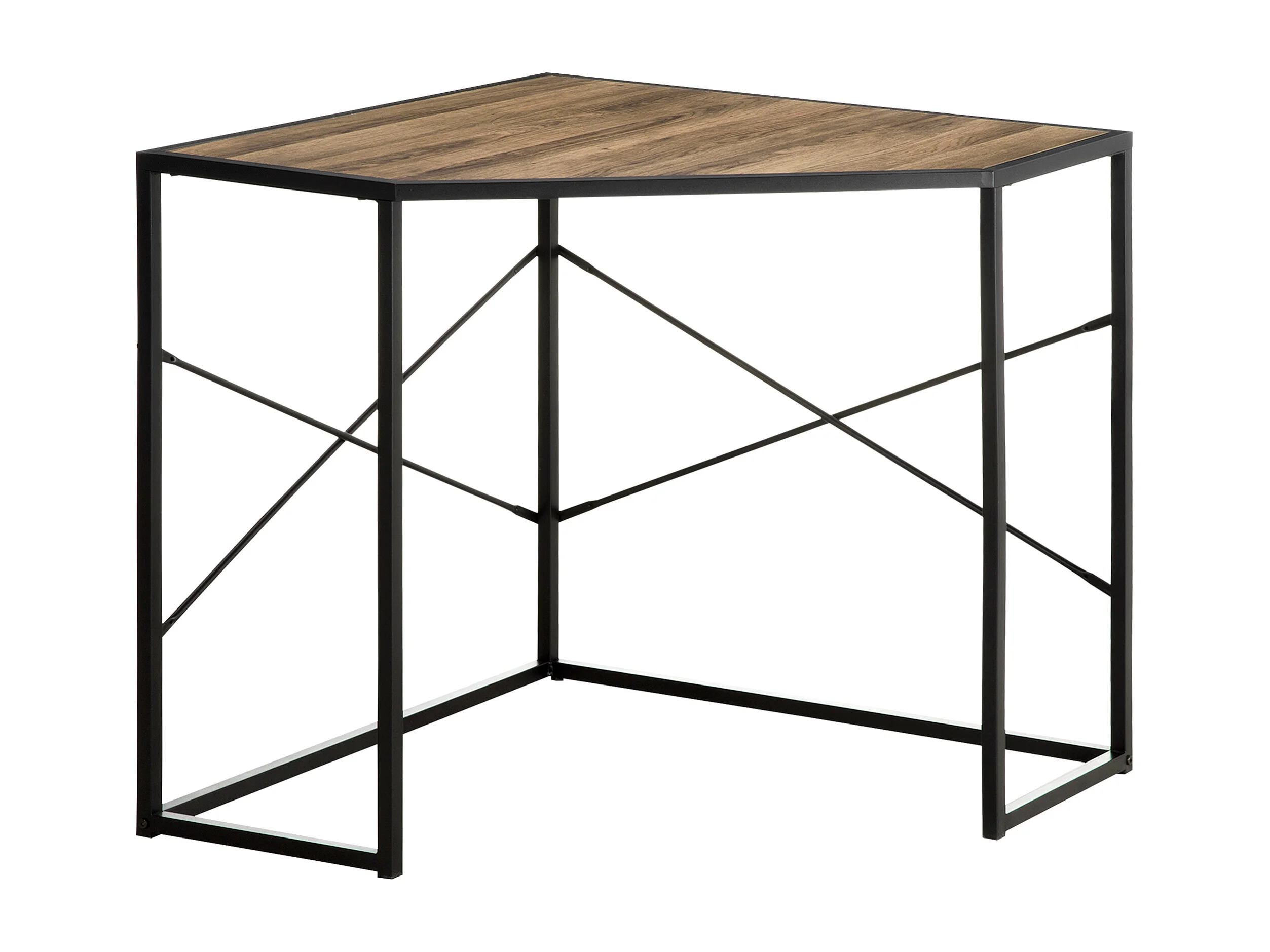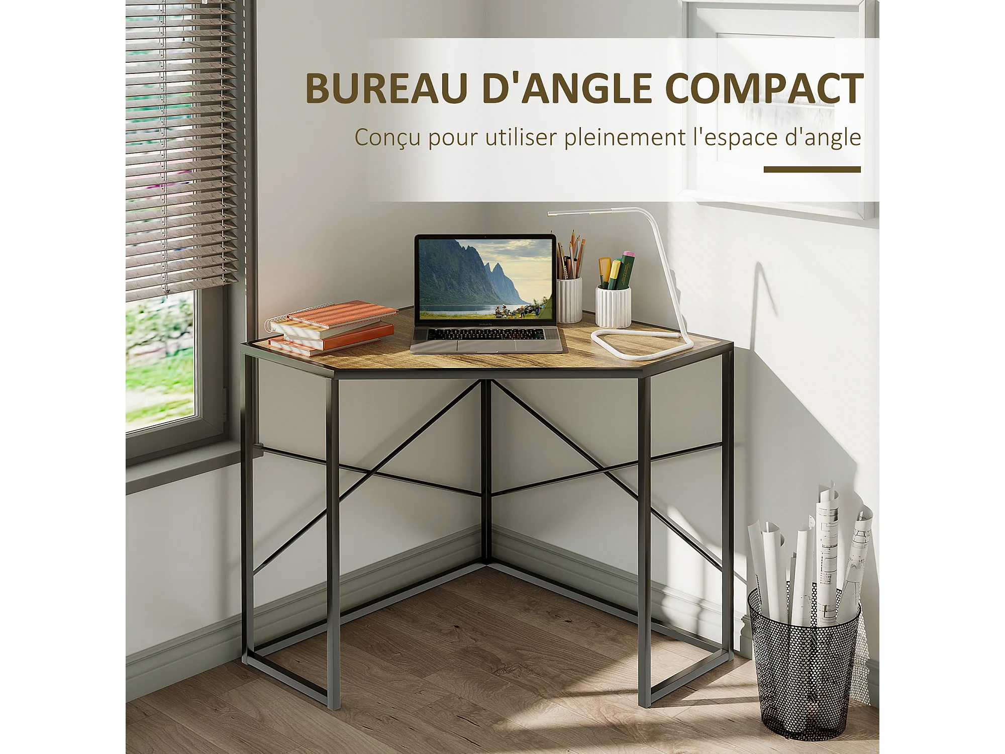 Bureau d'angle informatique design industriel - dim. 80L x 80l x 77,5H cm - métal noir panneaux particules aspect bois