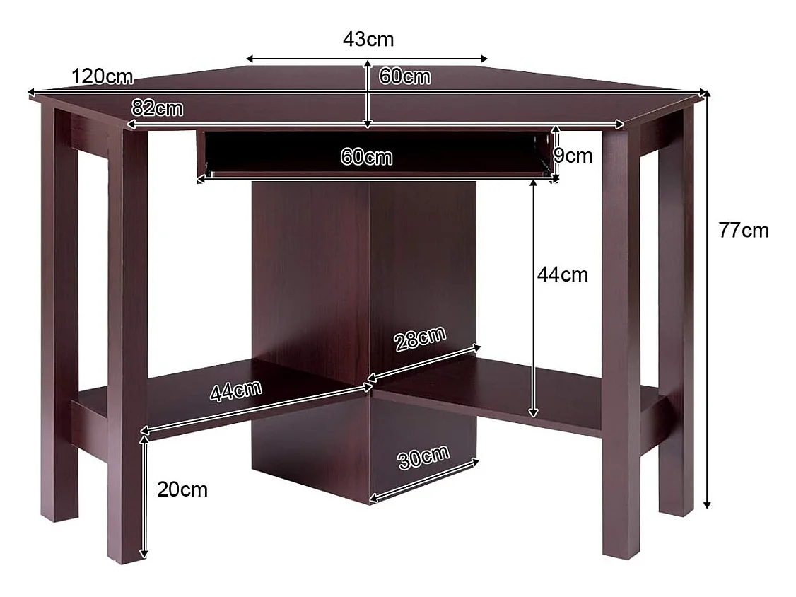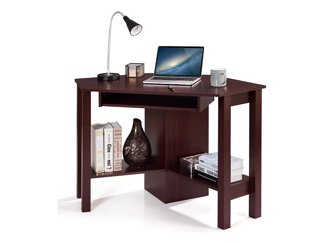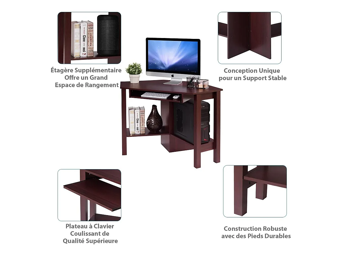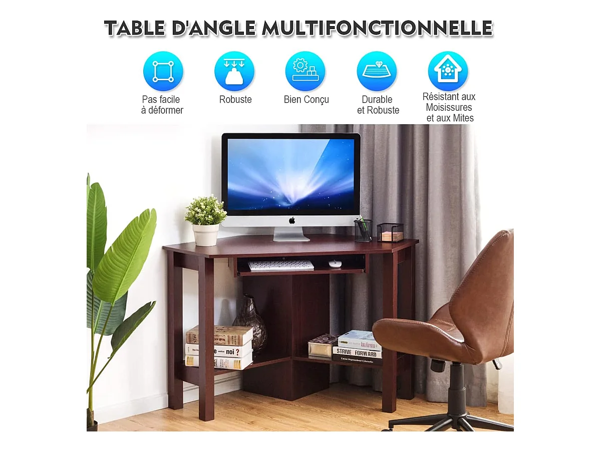 Bureau d’Angle Informatique pour Ordinateur Table en Bois avec Tiroir pour Clavier et Etagère de Rangement 120x60x77CM Brun