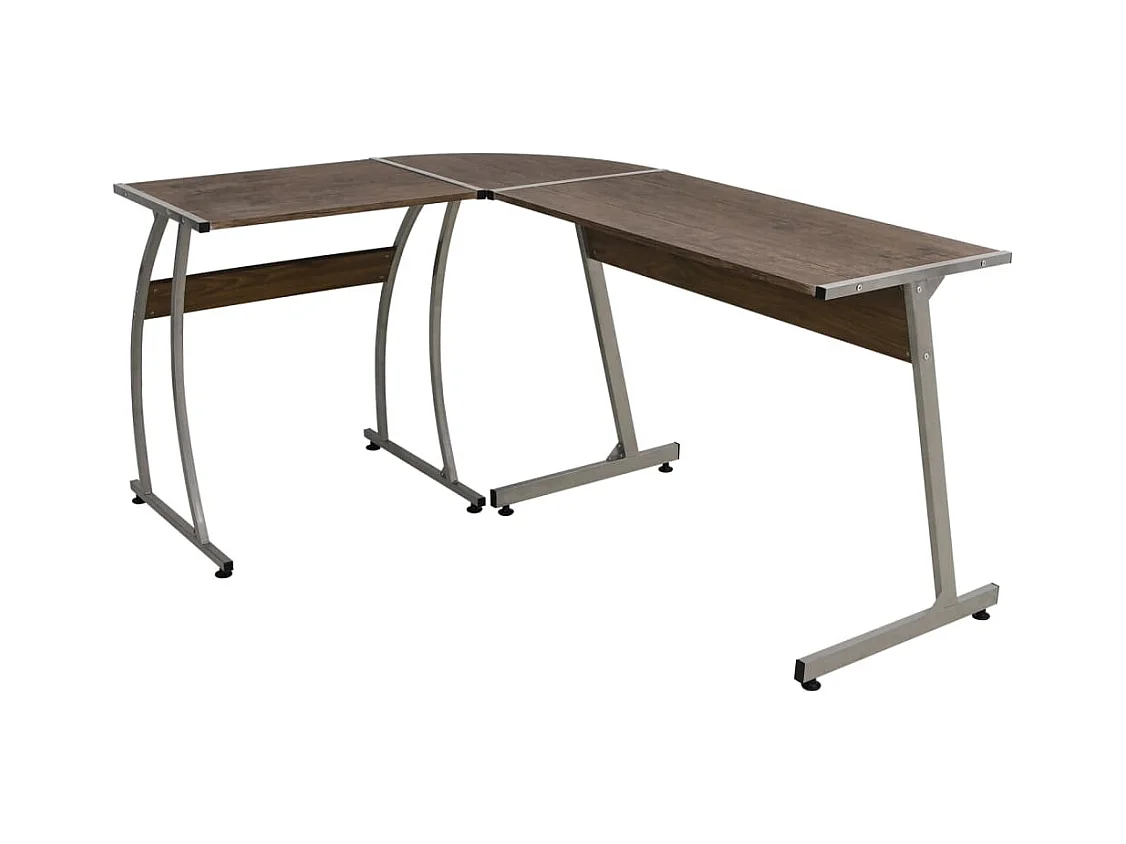 Bureau et lumières LED gris béton 152x152x91cm bois ingénierie