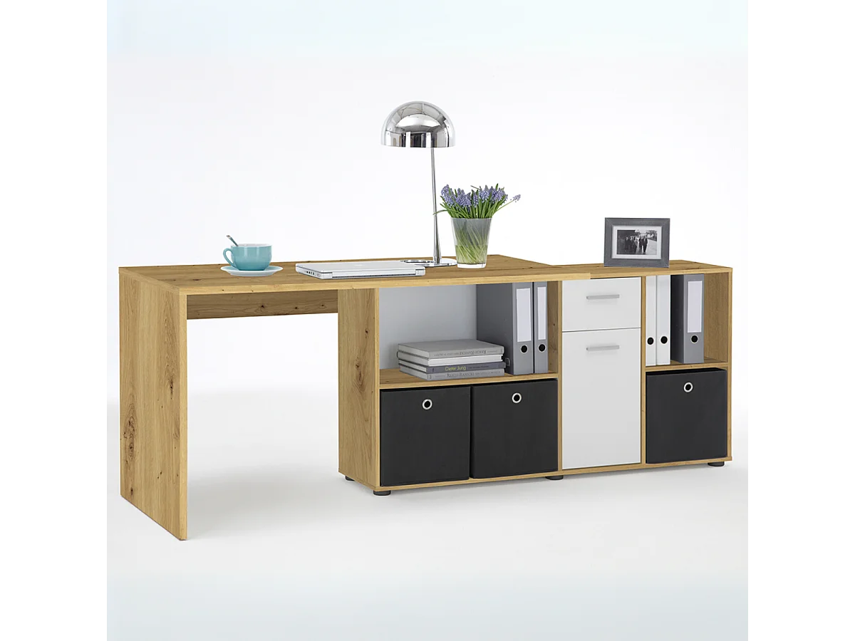 Bureau d'Angle Modulable avec Caisson, Tiroir et Étagères de Rangements - Lex