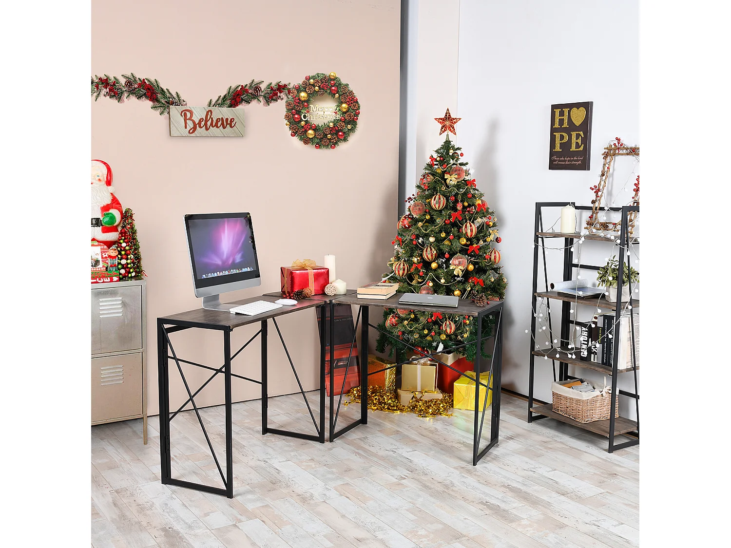 Bureau d'angle Style Industriel Cadre en métal Pliable Imitation Noyer,ALBERTIN