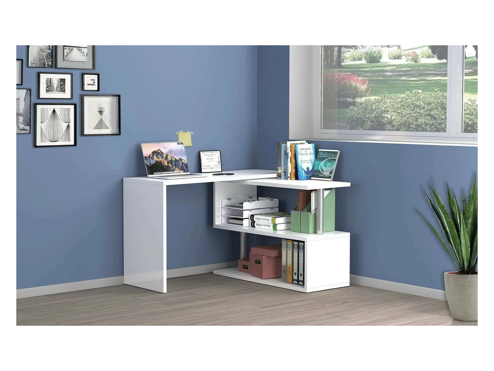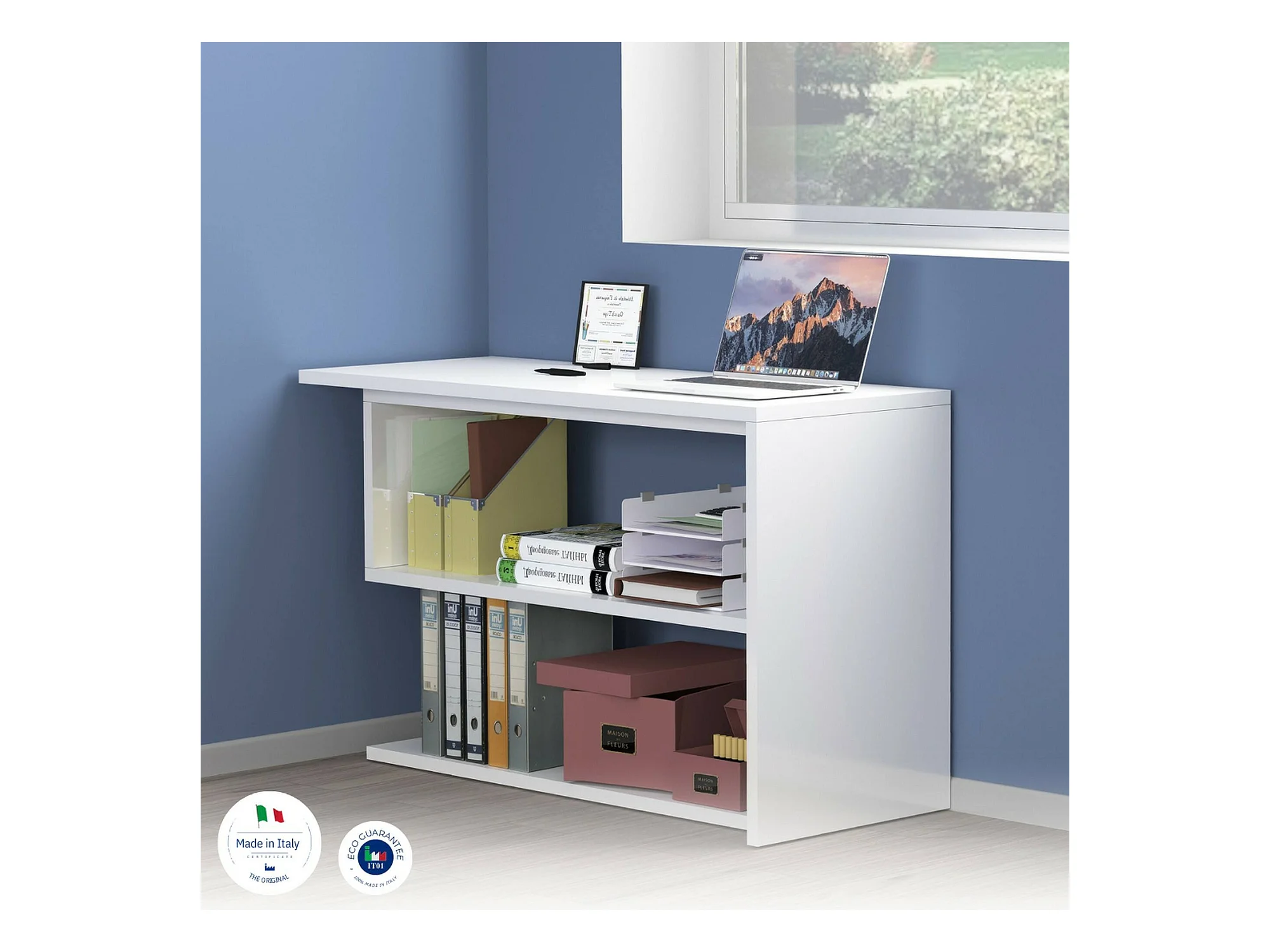 Bureau Dascagn, Bureau PC d'angle, Table de bureau polyvalente, Bureau multi-positions gain de place, 100% Made in Italy, 120x50h75 cm, Blanc brillant