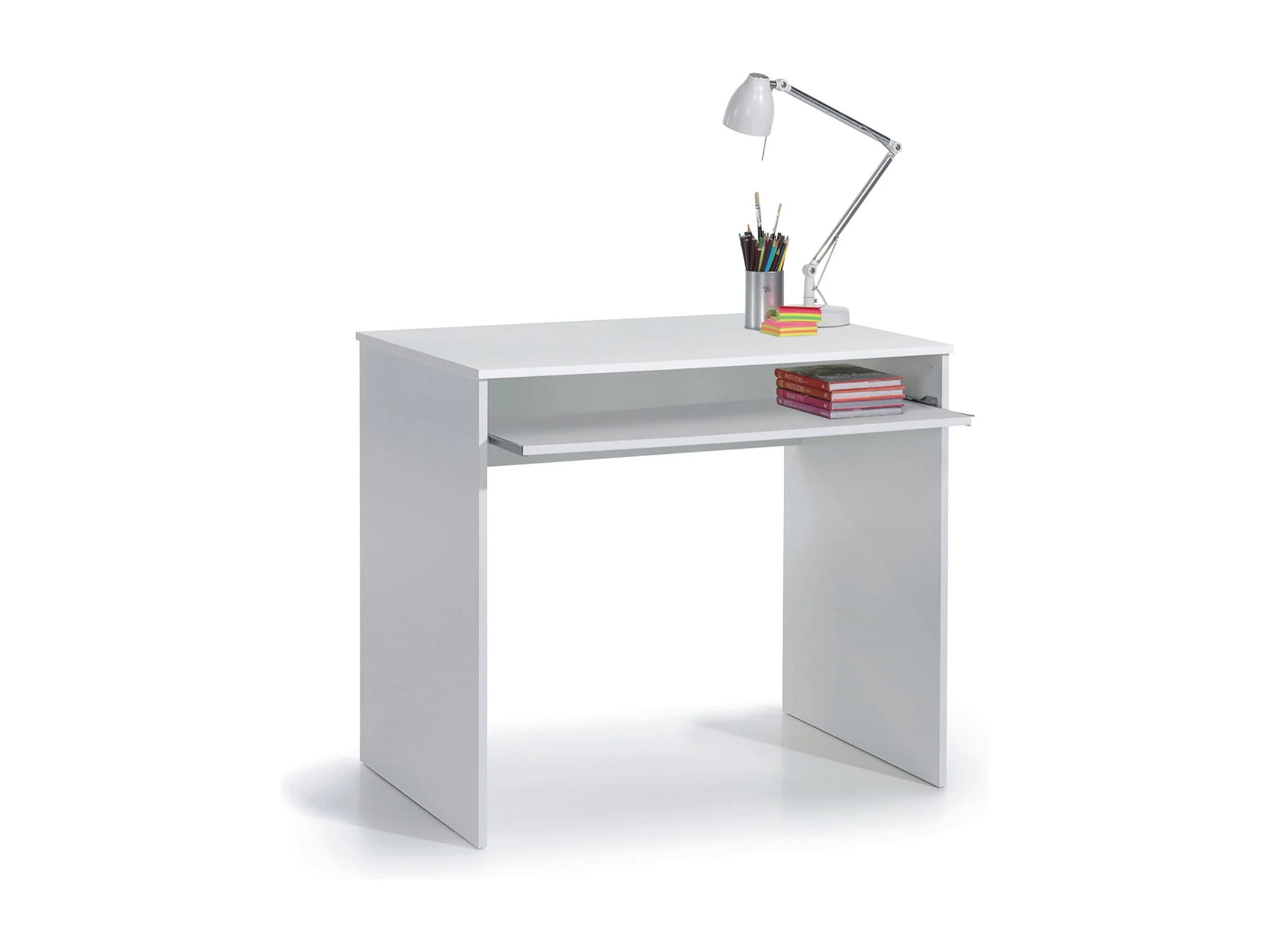 Bureau Dmachi, Bureau linéaire avec étagère fixe, Table d'étude ou de bureau pour PC, 79x43h78 cm, Blanc