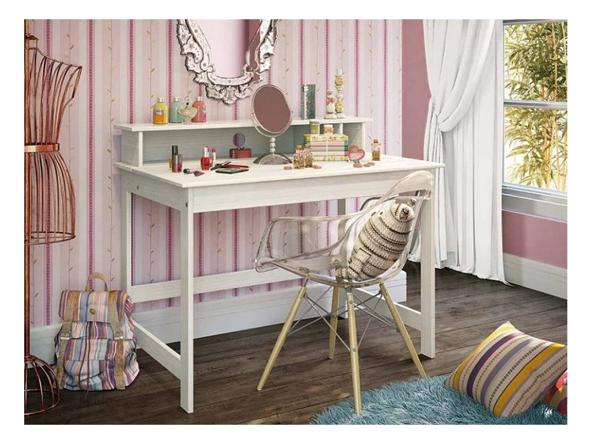 Bureau d'enfant en pin massif vernis blanc - L.110 x H.76/91 x P.69 cm