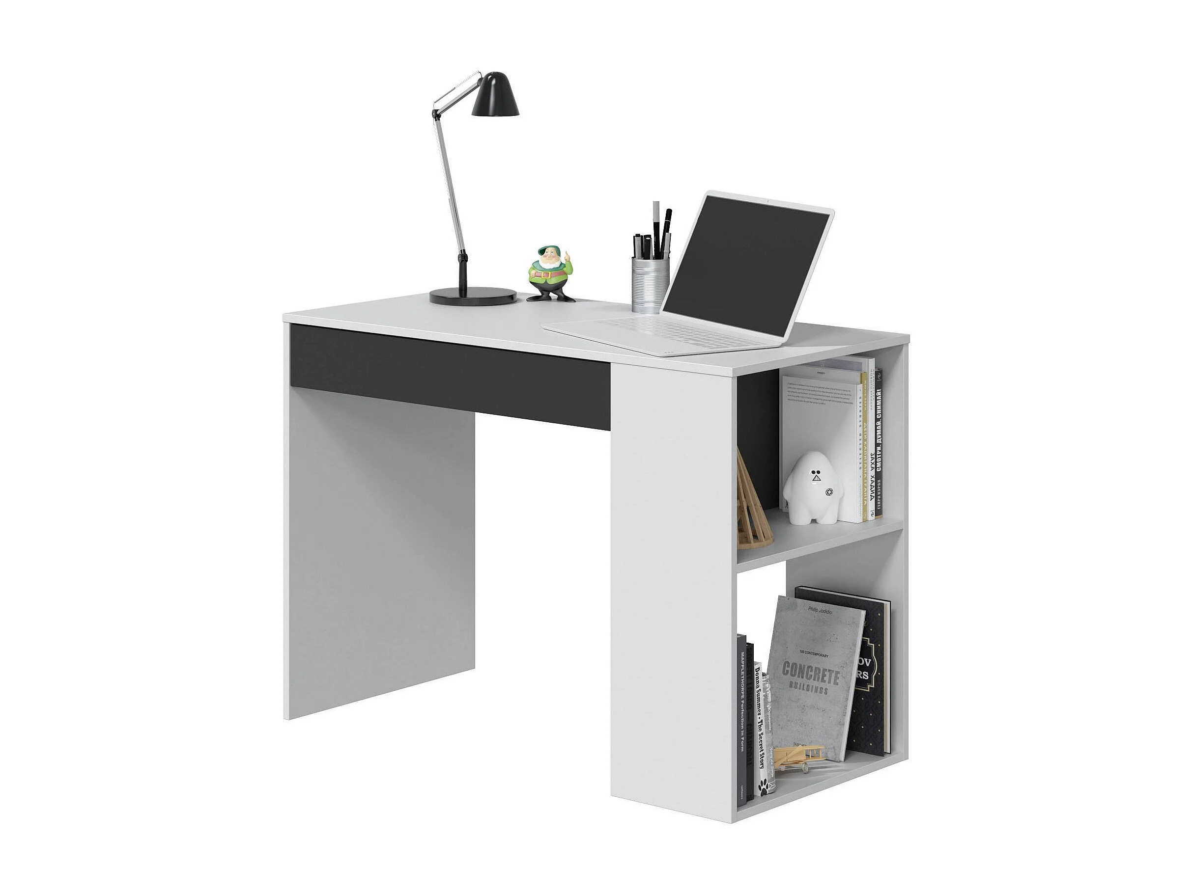Bureau Boise, Bureau multifonction réversible avec tiroir, Table d'étude ou de bureau pour PC, 101x50h73 cm, Blanc et Anthracite