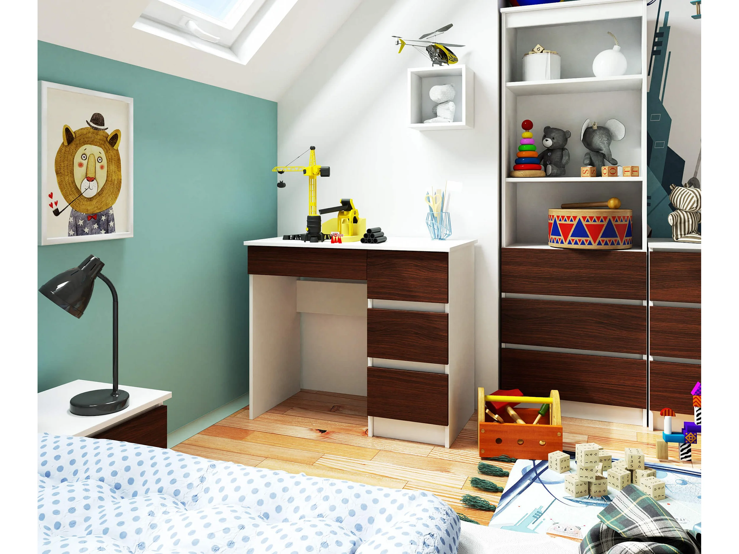 Bureau d'ordinateur AKORD droit A7 Blanc 90 cm 4 tiroirs façade Wengé 90x50x77 cm